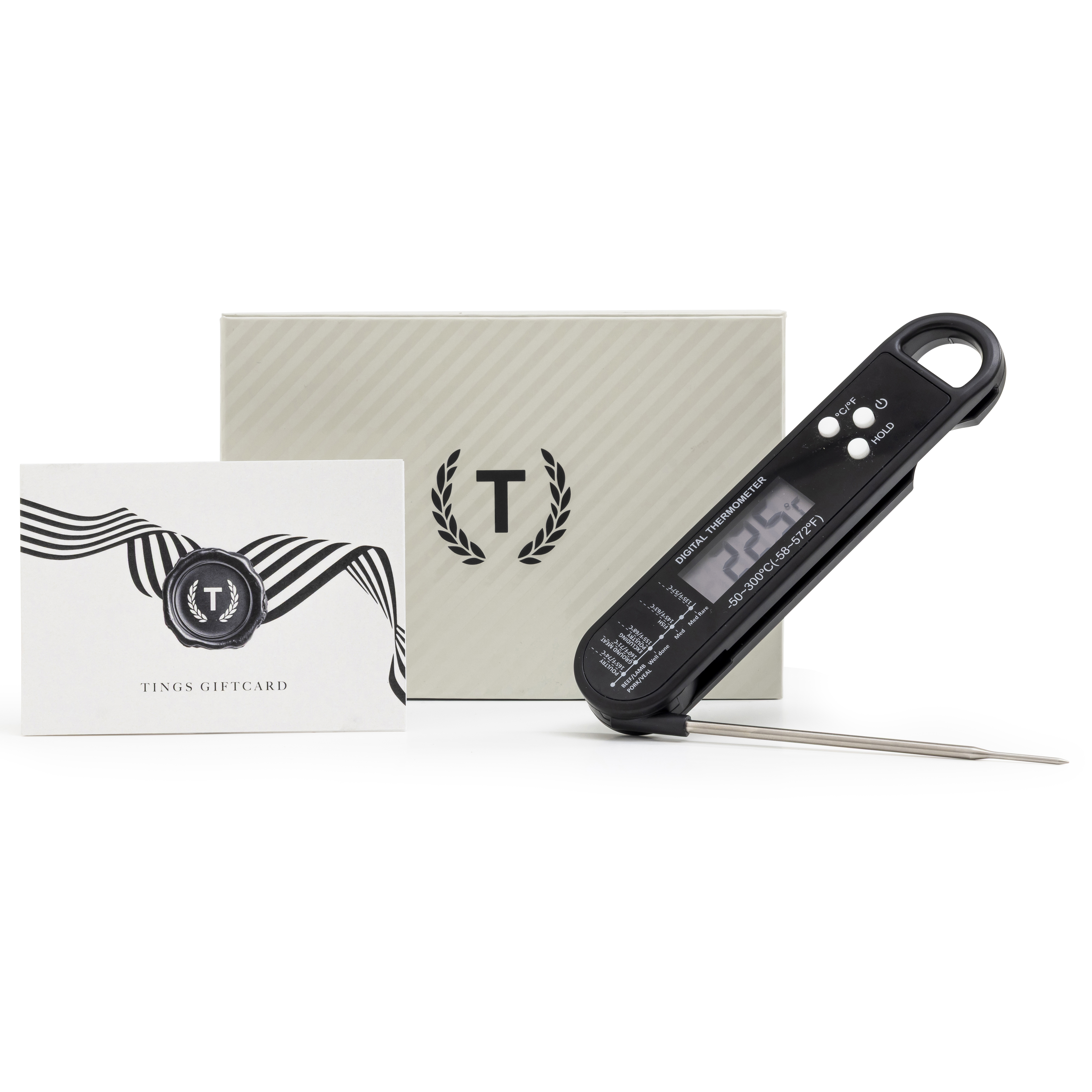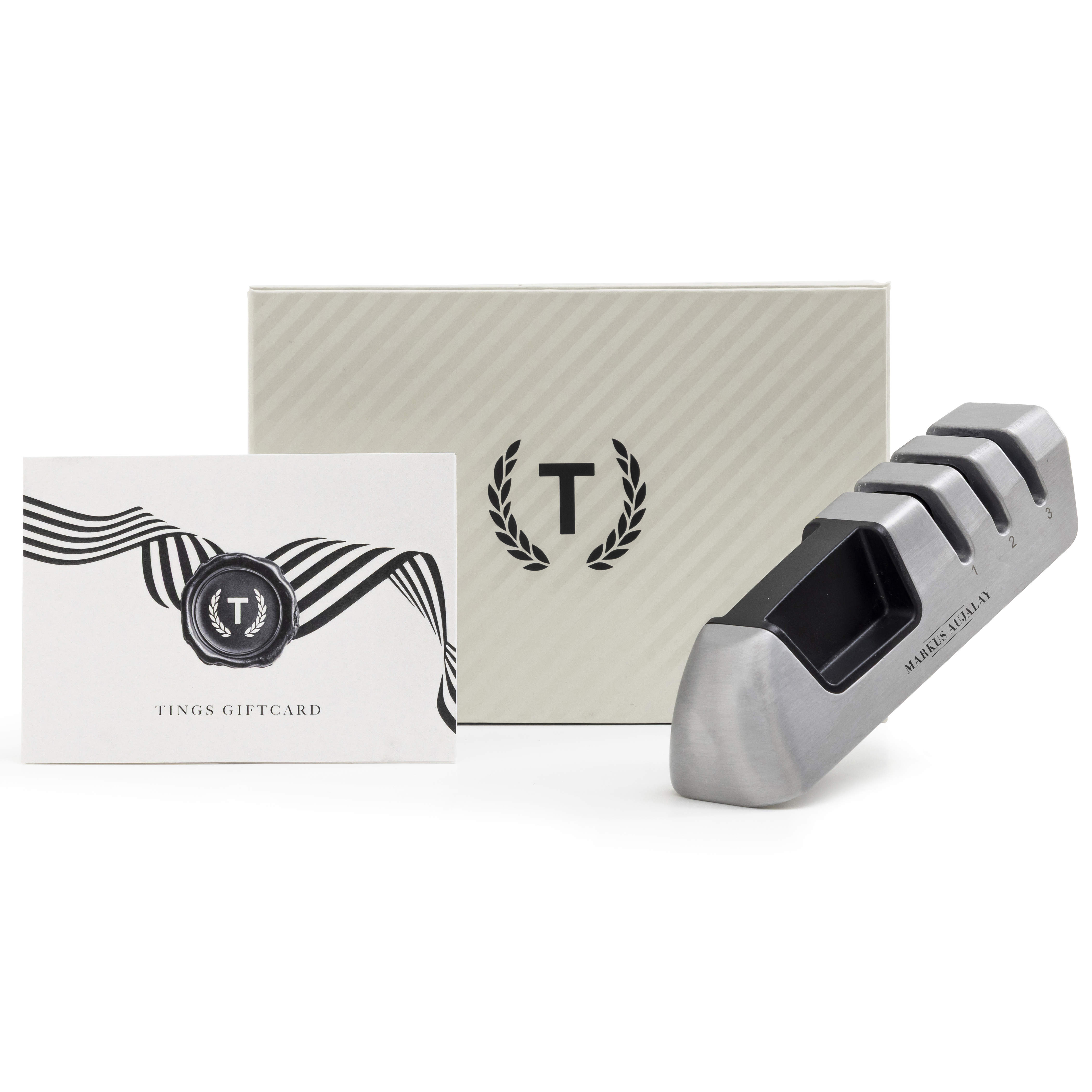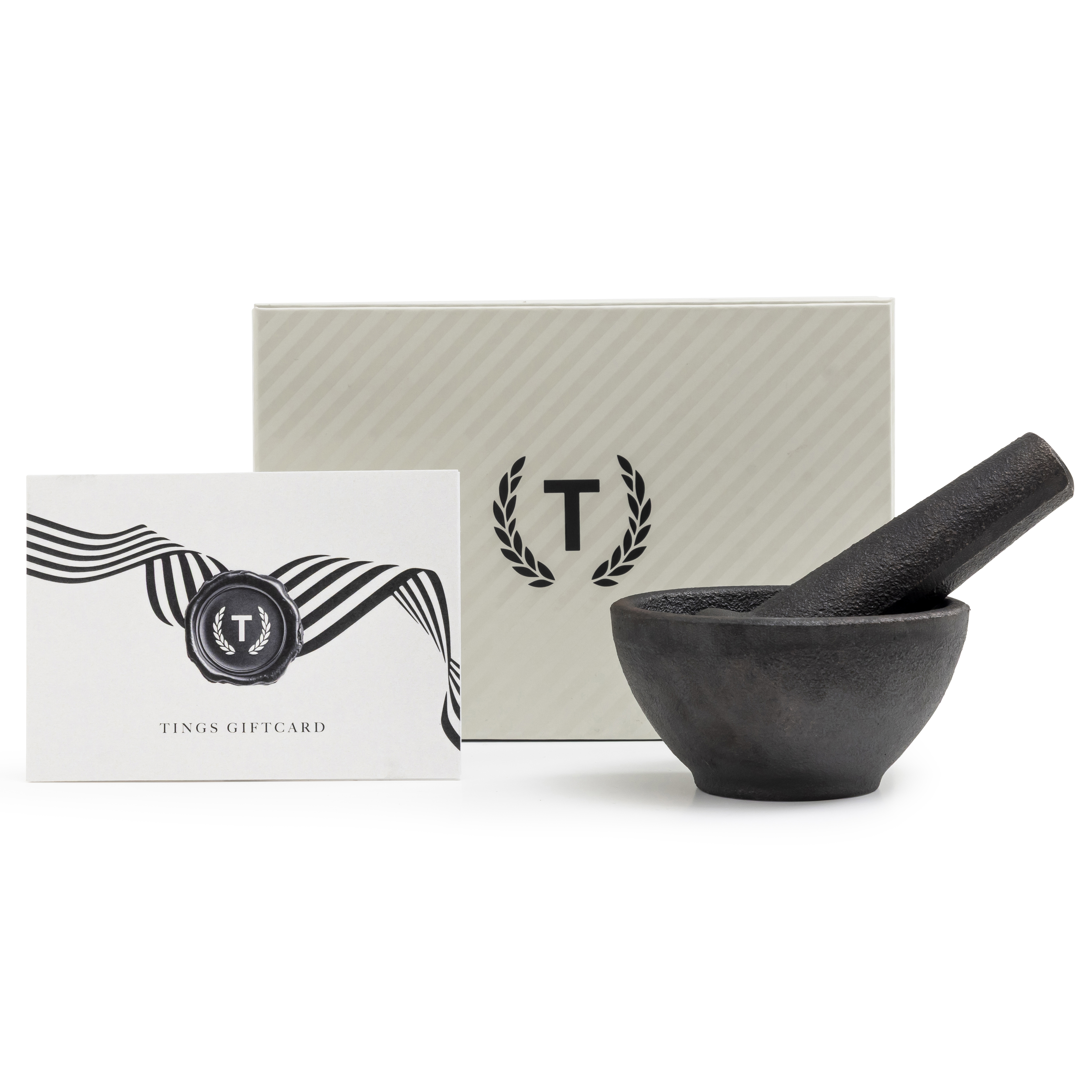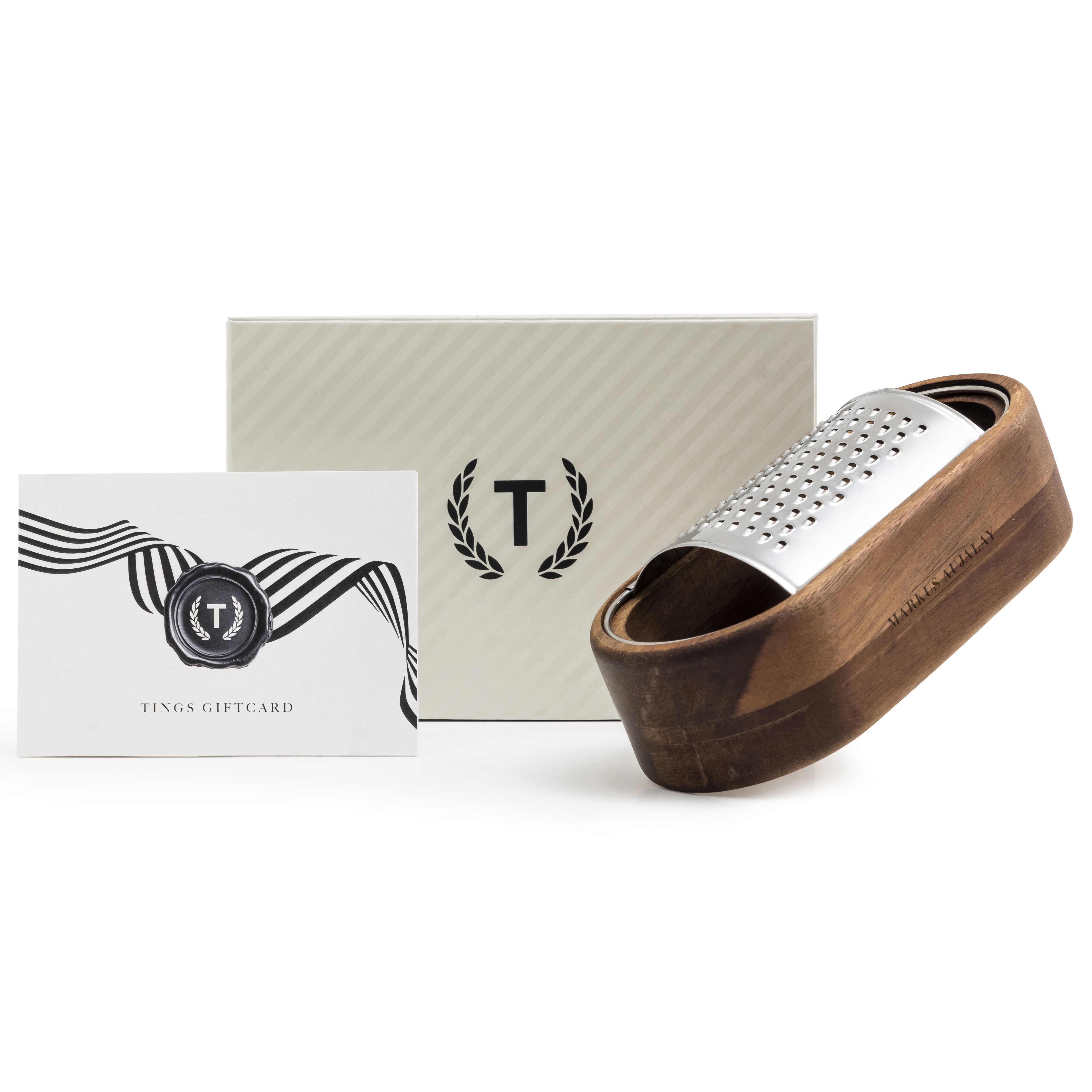 Ett exklusivt gåvokort med massor av kökstillbehör, inredning för hemmet och fritidsprodukter som passar alla och som väljs på Tingsgiftcard.se med en kod som mottagaren får i kortet. Gåvokortet ligger förpackat i en exklusiv giftbox med en extragåva och ett julkort.
