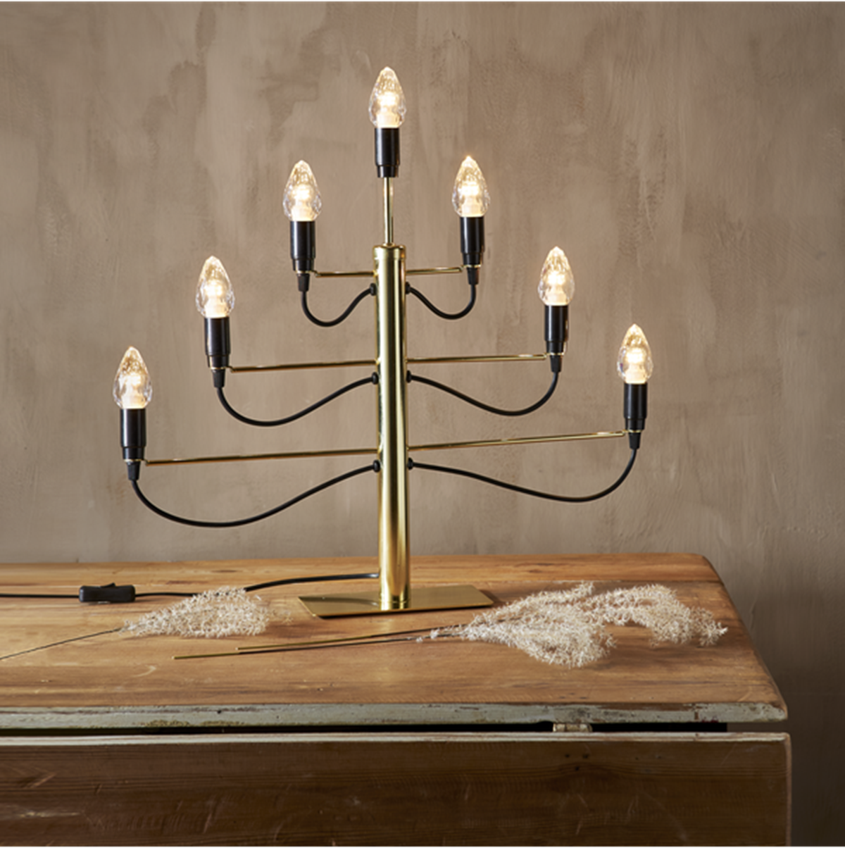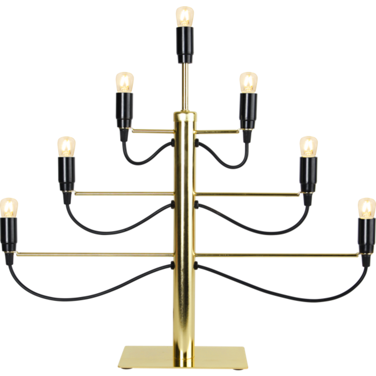Stilren och modern metall ljusstake i mässingsfärg, med plats för 7 ljuskällor. Ger ditt hem en modern touch. Mått: 60x52,5x10 cm. Ljuskällor ingår ej (E14).