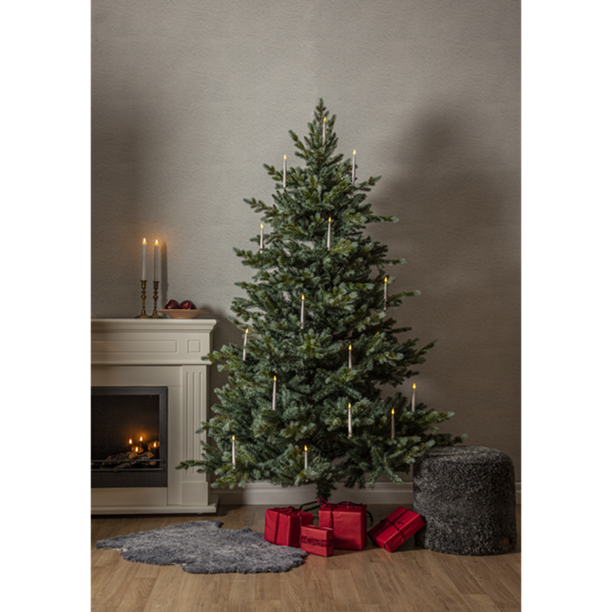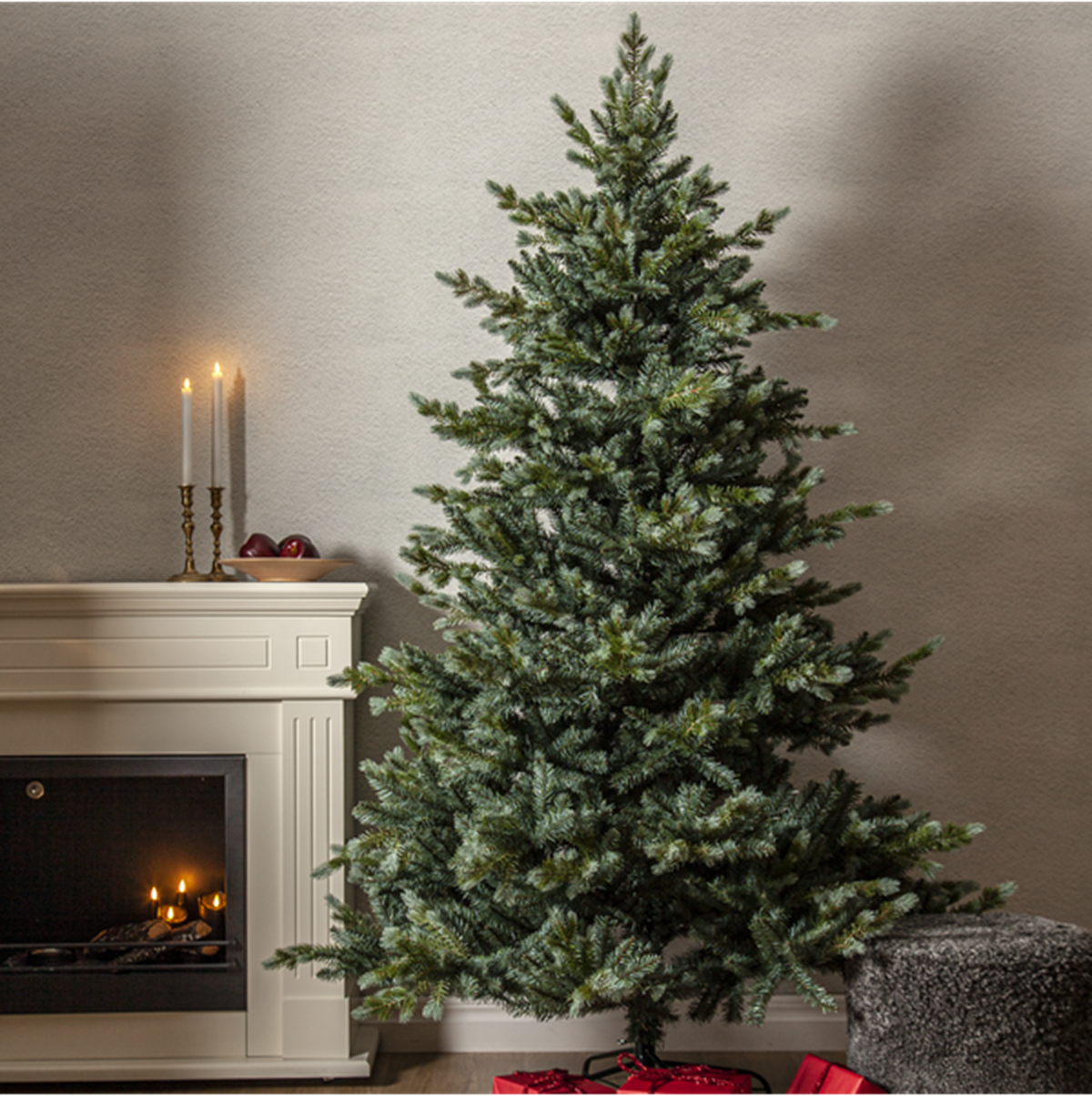 Plastgranen Greyland är tillverkade av en mix av PE-tips och rundklippta PVC-tips med ett vackert grågrönt utseende. Denna mix ger ett tätt och lyxigt utseende. Grenarna är fastsatta på stammen med gångjärn vilket gör montering enkel då grenarna faller på rätt plats när de olika delarna sätts i varandra, det enda som återstår är att vika ut kvistarna till en fin form för att få en vacker julgran. Grenarna sitter fast i lager och ger ett vackert skimrande utseende. Granen har en höjd på 210 cm och bredd på 142 cm. Granen går att använda både inomhus och utomhus.