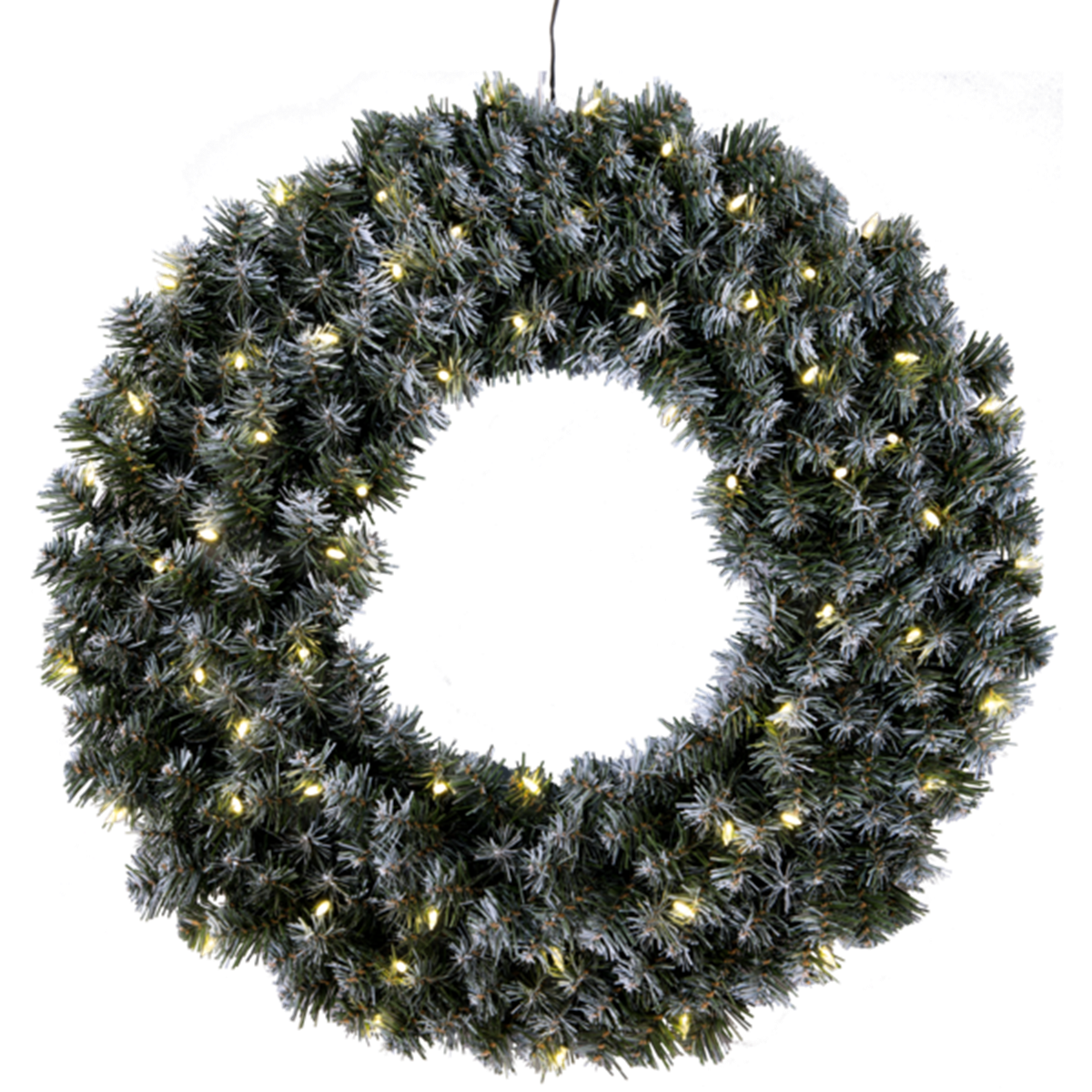 Grön krans med snö och 60 varmvita LED-lampor. Kransen ger ett fint och inbjudande sken i mörkret. Dekorera med kransen inomhus eller utomhus exempelvis mot en vägg eller på en dörr. Mått: 70x70 cm.