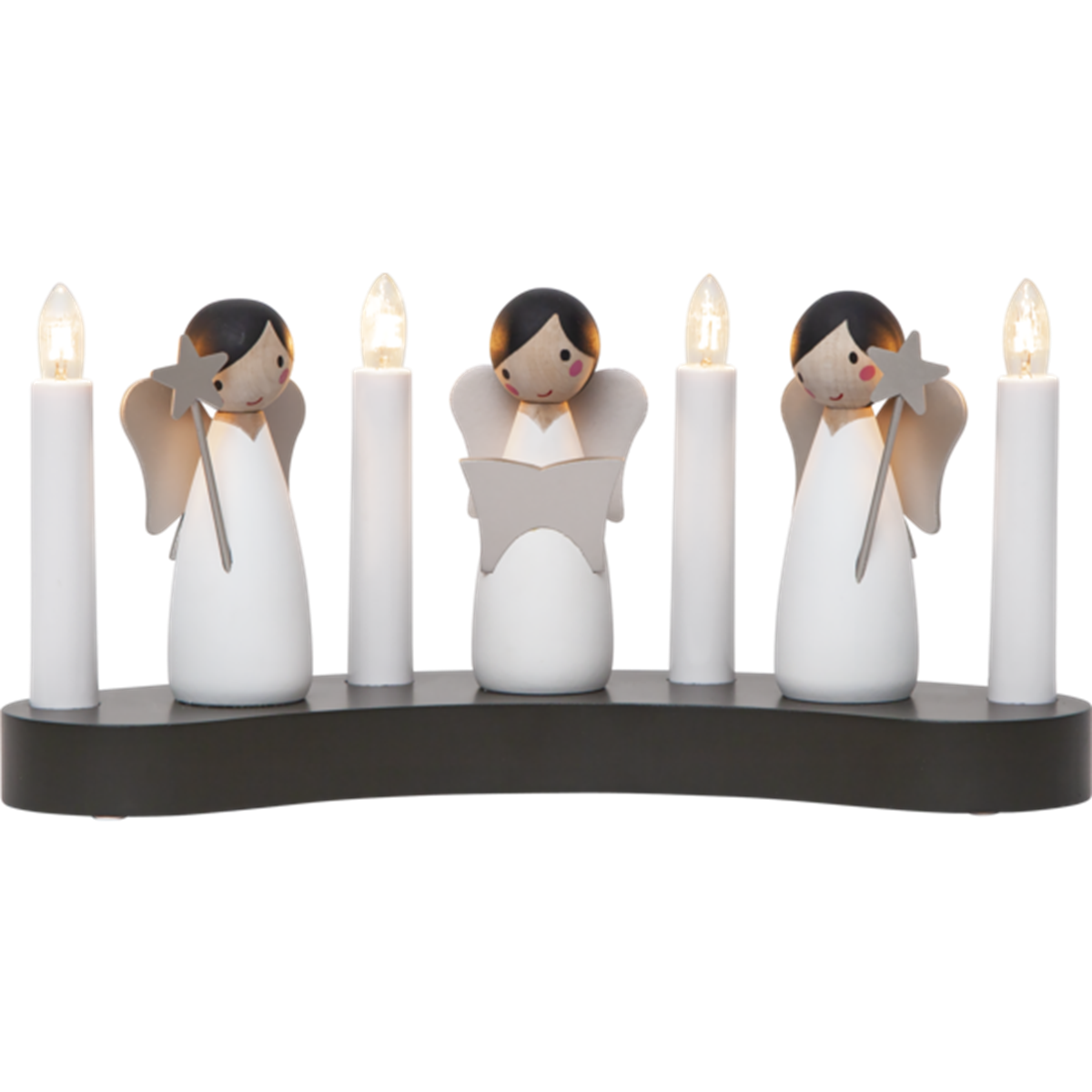 Fina änglar i form av en adventsljusstake. Ljusstaken är tillverkad i trä och ger en fantastisk härlig och fin julstämning. Placera den i ett fönster, på en hylla eller på en skänk. Julens mysigaste dekoration gör det lilla extra. Mått: 31x15 cm.