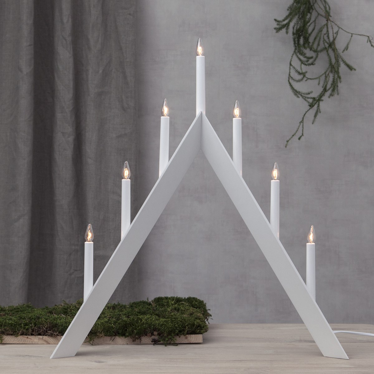 Modern träljusstake med fasade former. Skapar en härlig julstämning i både hem och offentlig miljö. Höjd 64,5 x bredd 60 cm.
