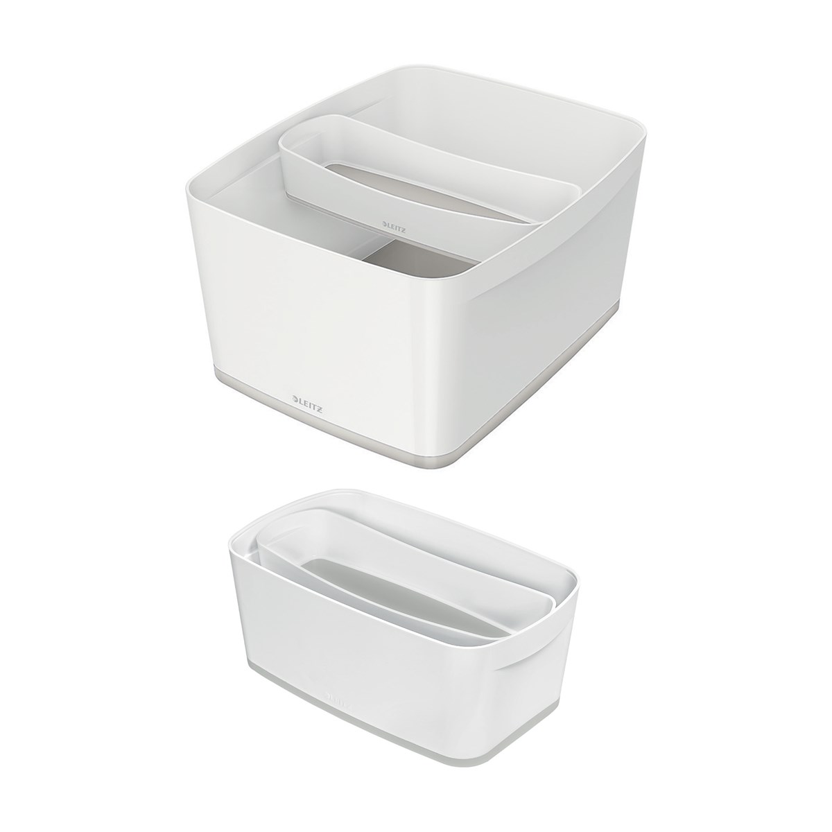 Stilrent förvaringsfack i två färger för snabb och enkel organisering och smart förvaring. Kombinerat med Leitz MyBox Large eller Small är detta den optimala förvaringslösningen. Tillverkad av robust, reptåligt och vattentätt plastmaterial för en förstklassig finish. Livsmedelssäker. Fri från BPA. När den används inuti en MyBox vilar förvaringsfacket på boxens övre kant så att förvaringsutrymmet behålls. När du inte använder kan facken kan de staplas inuti varandra för att spara utrymme. Lätta att rengöra, med mjuka rundade hörn. Format: 307 x 55 x 105 mm.