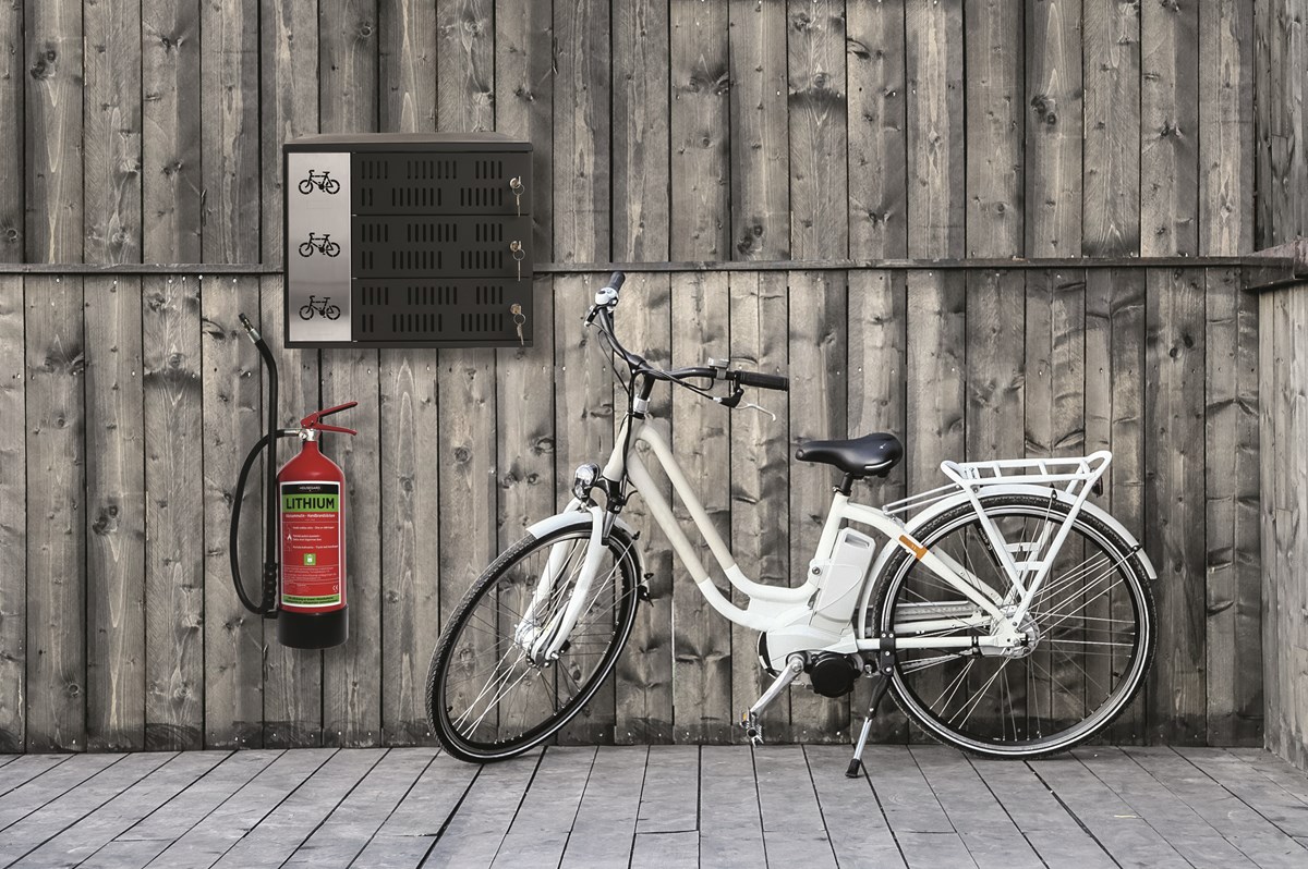 Ett skåp för förvaring och laddning av batterier till elcyklar. Skåpet monteras på väggen eller ställs på en hylla eller bord. Väl ventilerad för att ge bästa möjliga miljö för batterierna vilket maximerar deras livslängd. Levereras med nyckellåsning men som tillval finns elkodlås (ASSA coded). 3 fack. Mått (B x H x D): 560 x 550 x 250 mm. Vikt: 11 kg. Frakt tillkommer, kontakta oss för prisuppgift.