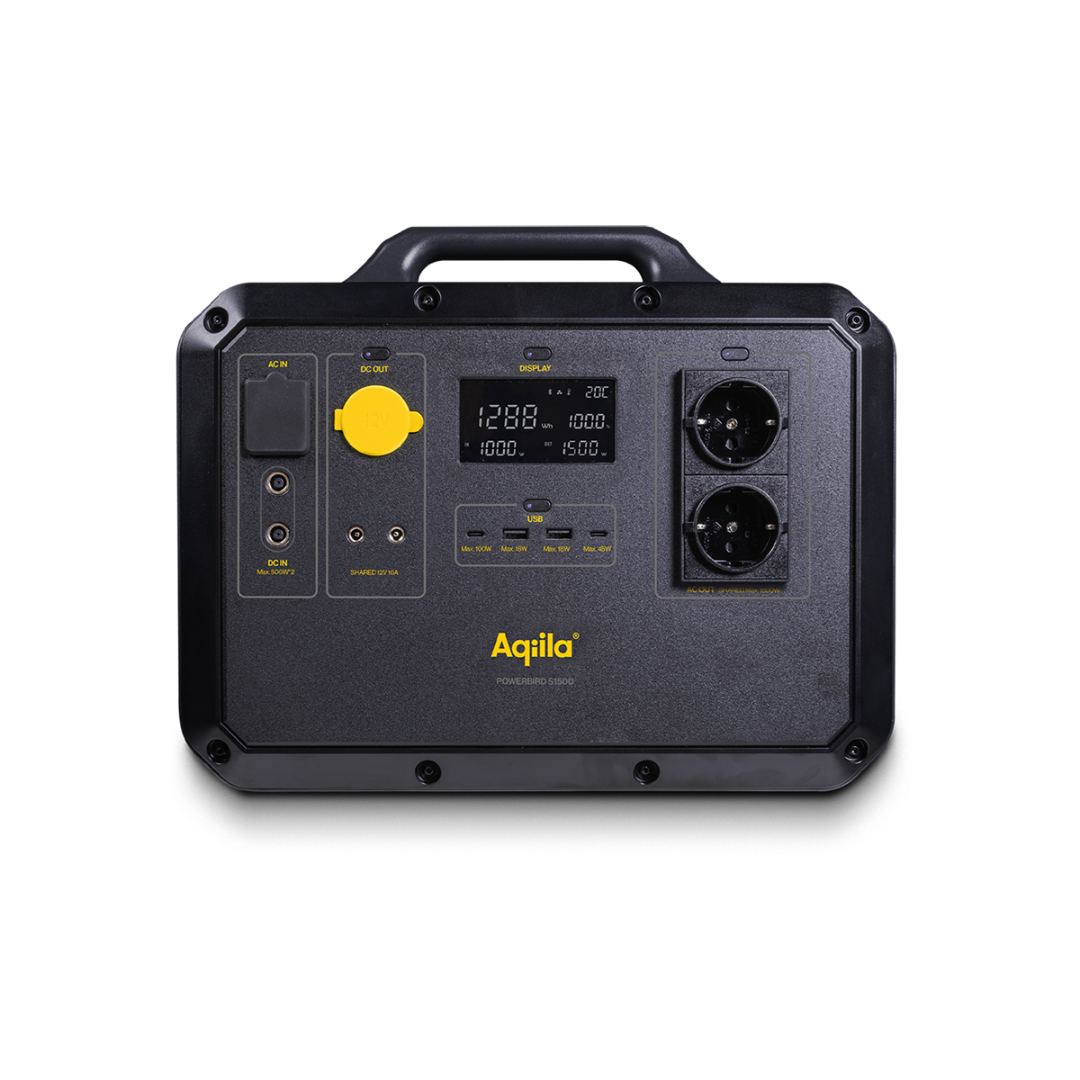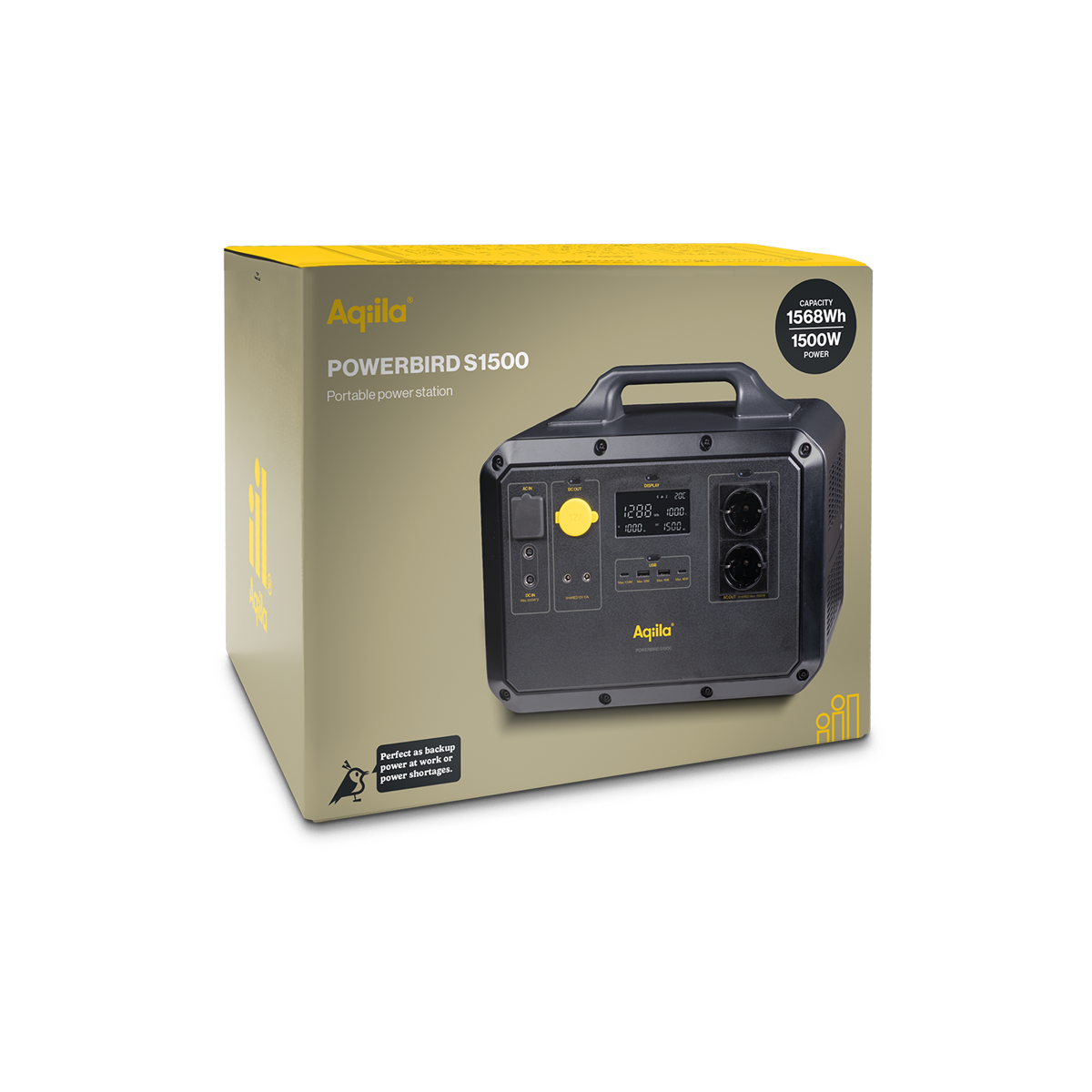 Aqiila Powerbird S1500 är en kapabel och kraftfull powerstation som låter dig ladda dina saker var du än är. Precis som en powerbank kan den ladda dina prylar och låta dig använda dina apparater när du är på språng. Perfekt som strömkälla i husvagnen, i skjulet eller om du behöver arbeta ute på fältet. Detta är en användbar och bekväm powerstation med integrerade säkerhetsfunktioner och solcellsladdning. Det kraftfulla batteriet är väl skyddat med den senaste BMS-tekniken som garanterar säker och stabil användning. Med den senaste generationens LFP-batteri är det möjligt att ladda och tömma Powerbird över 4000 gånger. Det är nästan 11 års daglig användning. Powerbird är säker, hållbar och effektiv. Powerbirds powerstationer är utrustade med den senaste MPPT-tekniken, som gör det enklare och mer effektivt att ladda Powerbird med solpaneler än någonsin tidigare. Du kan ansluta två solpaneler till Powerbird S1500 för maximal effektivitet.