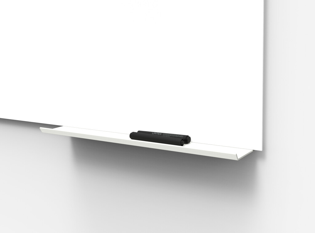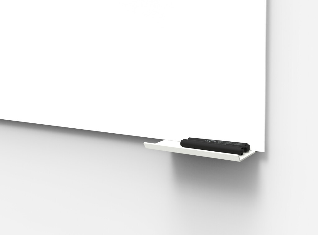 Magnetbärande glastavla i Pure 130 vit. Tavlan är tillverkad i 4 mm tjockt optiskt glas med extra låg järnhalt, vilket ger ett helt klart glas utan gröna toner. Det klara glaset ger en lyster och en exakthet i färgerna som inte kan uppnås med ett vanligt standardglas. Dolda beslag. Djup från väggen 12mm. Pennhylla säljs separat.