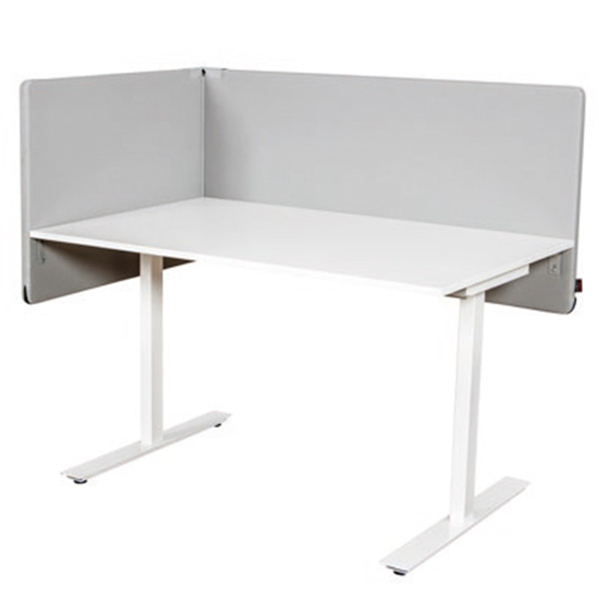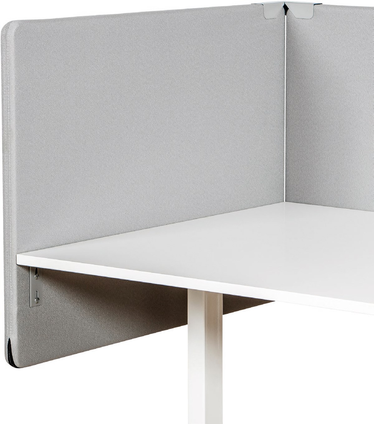 Skapa din egen arbetsplats med insynsskyddade och ljudabsorberande skärmar. Höjd 600 mm (400 mm ovan och 200 mm under skivan) och djup 34 mm. Bordsfäste köps separat.
