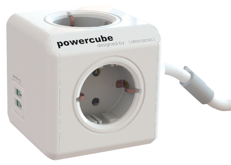 Utbyggnad till PowerCube Extended med kabel. Passar inte i standard vägguttag/grenuttag. Grenuttagets smarta utformning gör att stickpropparna inte är i vägen för varandra. Med 2 st högeffekts usb-uttag för laddning av usb-kompatibla enheter som t.ex. mobiltelefon, läsplatta, kamera, GPS m.m. 230 V, 16 A. Usb: 5 V/2100 mAh (5 W). Jordad.