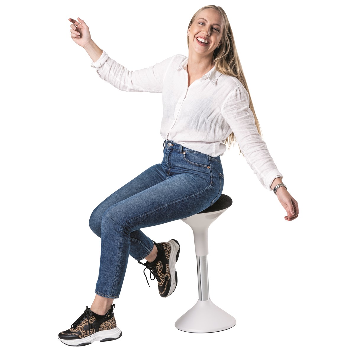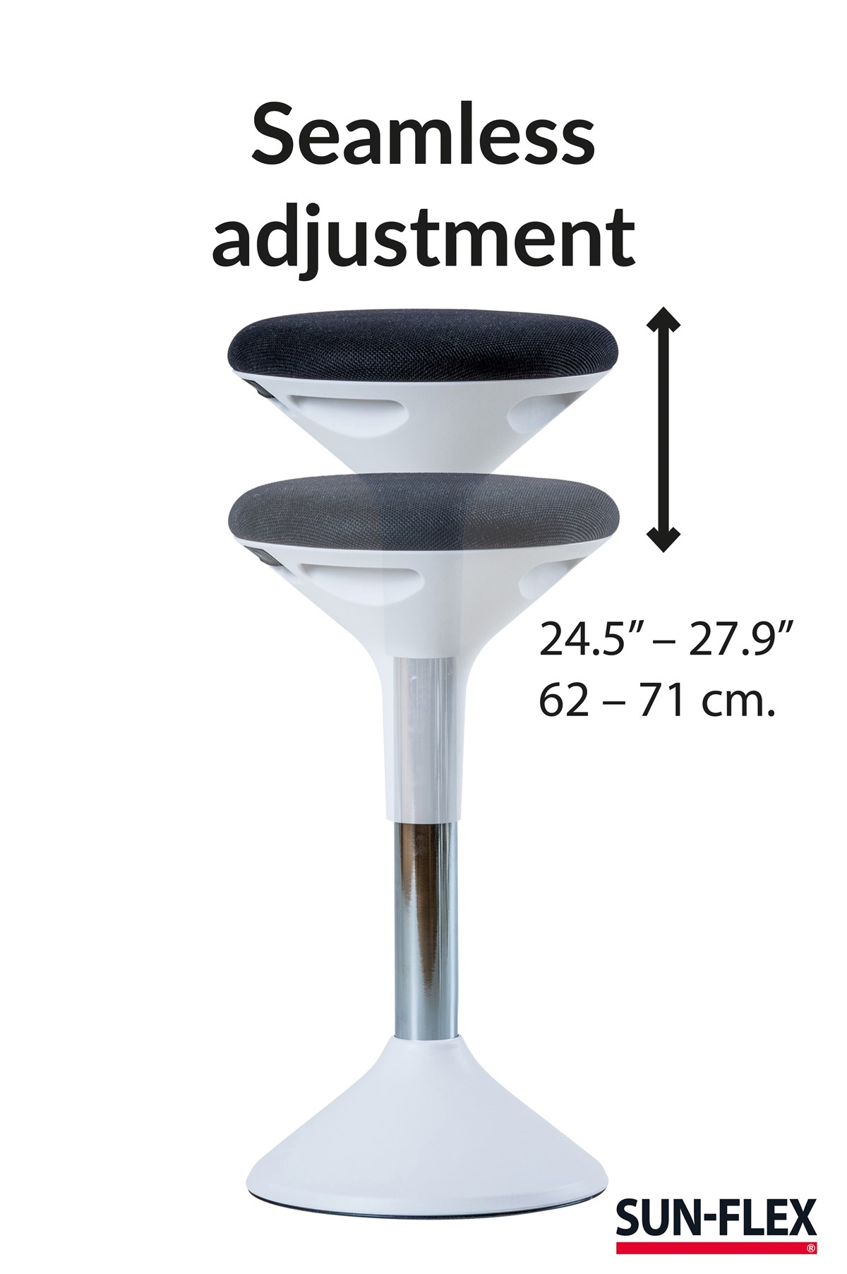 Stimulerar den s.k. coremuskelaturen. Detta ger dig ett aktivt sittande vilket främjar din hälsa på flera sätt. Du bygger upp din muskulatur helt naturligt och ökar din blodcirkulation. Balansera gärna med fötterna på den nedre delen av stolen, du balanserar då på samma sätt som när du är ute och cyklar eller ute på en ridtur. En aktiv stol lindrar ryggbesvär, ger bättre hållning och stärker kroppen. Stolens aktiva funktion skapar ett intuitivt träningspass vilket ger dig bättre hållning och en starkare kropp. Variera gärna ditt aktiva sittande med ett aktivt stående för en optimal arbetsplats. Höjd: 62–71 cm. Sits: Ø 31 cm.