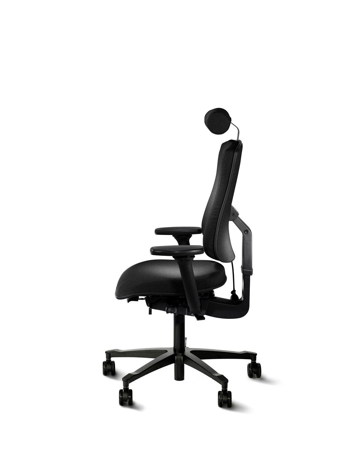 Med en speciellt utformad rygg med en kant av kallskum som sedan fyllts av mjuk polyeten upplevs stolen som väldigt mjuk och komfortabel. Rörlig, justerbar rygg som ger ett bra stöd för hela ryggen samt avlastning för axlarna. Sitsen följer dig när du lutar dig fram och ger ett ergonomiskt stöd och underlättar aktivt sittande. Justerbar sitthöjd och sitsdjup. Låsbar sits. Balanserad och låsbar gunga. Hjul för hårda golv. Rygg: 42 x 54 cm. Sits b x d: 46 x 49 cm. Sitthöjd: 40–57 cm. Tyg: Fame.