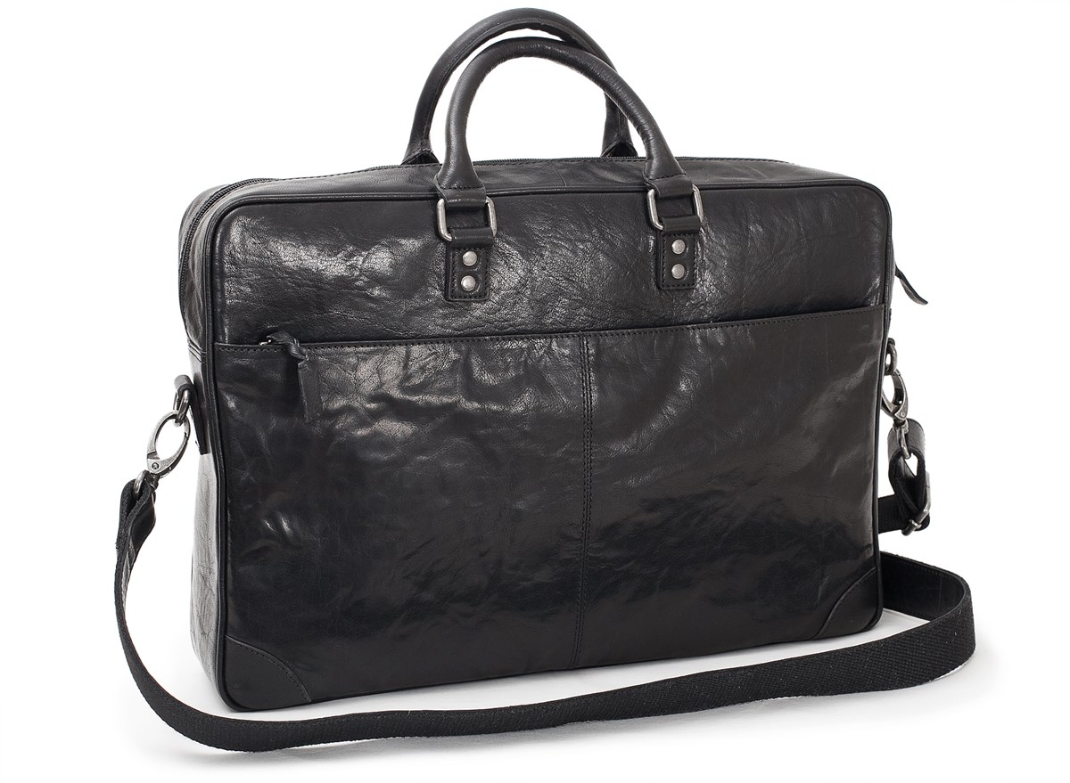 En portfölj som är lagom för en 15" dator. Vadderat datorfack, flera småfack och plats för dokument eller en pärm med smal rygg. Fack för surfplatta. Fack på utsidan. Tillverkad i buffelskinnet Smokey. Justerbar axelrem. Yttermått: 42x30x8,5 cm.