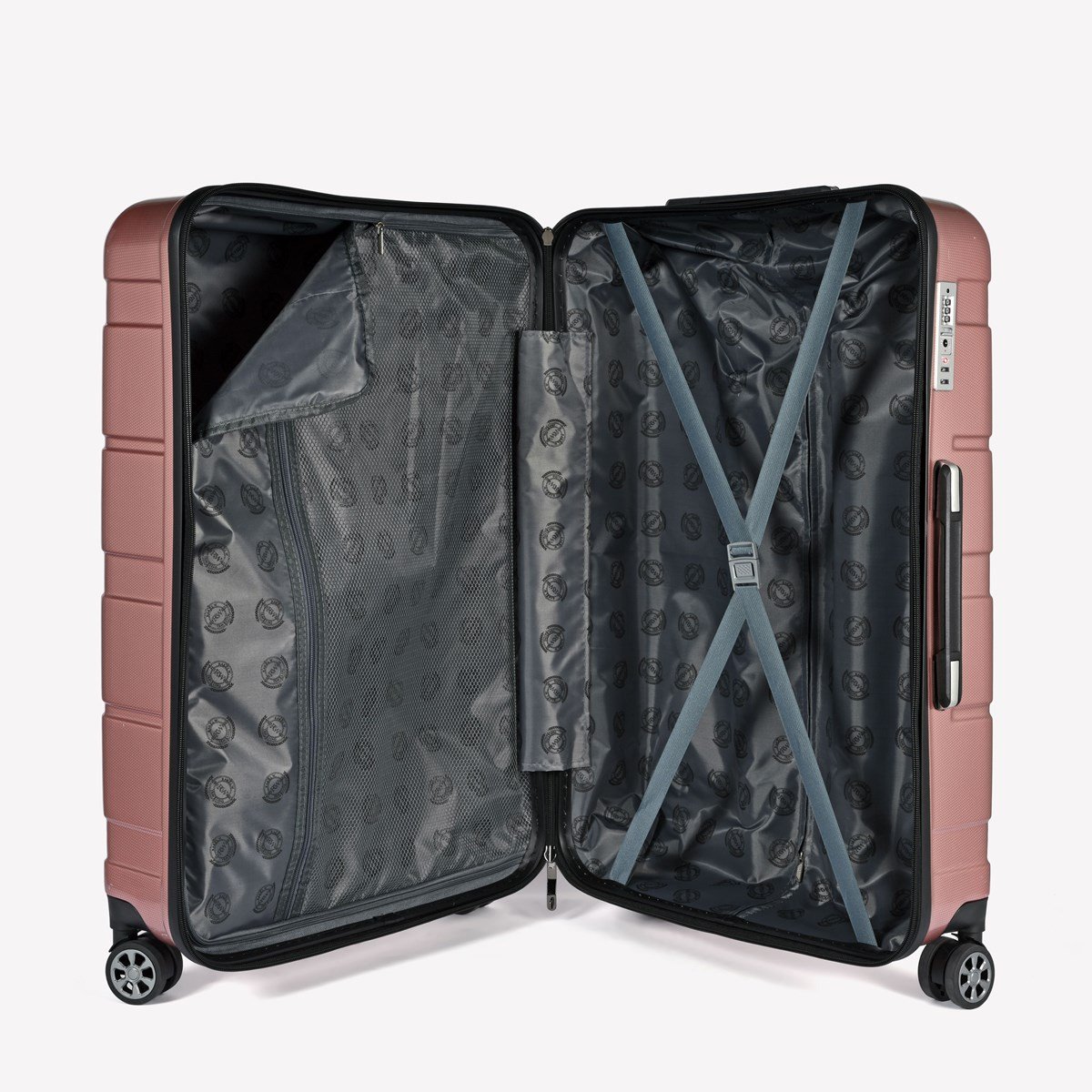 Varje väska har en elegant melerad yta som döljer repor och ger ett modernt intryck. Resväskorna är lätta och slitstarka med fyra tystgående 360°-hjul, teleskopshandtag i aluminium med justerbar höjd, inbyggt TSA lås och antistöld dubbeldragkedja.