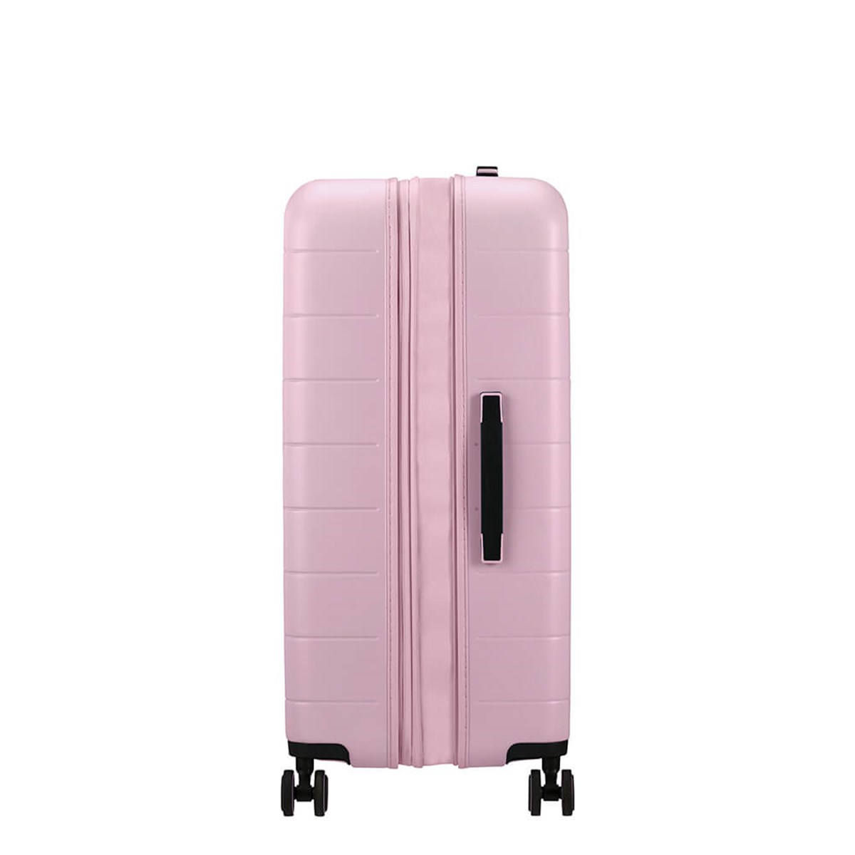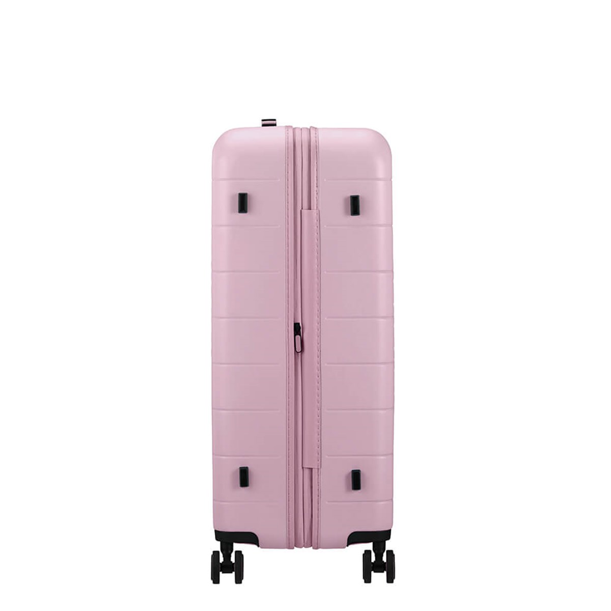 Nova Stream Spinner 77/28 Expand är perfekt för resor på 2 veckor med hela familjen, är expanderbar, har ett fast tresiffrigt TSA-kombinationslås och smidigt rullande dubbla hjul. Ergonomiska handtag. Väskan har måtten 51.5 x 77 x 29.5/34 cm, rymmer 103/121 L och väger 4.3 kg. Den är tillverkad av 100% polykarbonat och rPet Polyester med 15 återvunna PET-flaskor och Recyclex-materialteknologi.