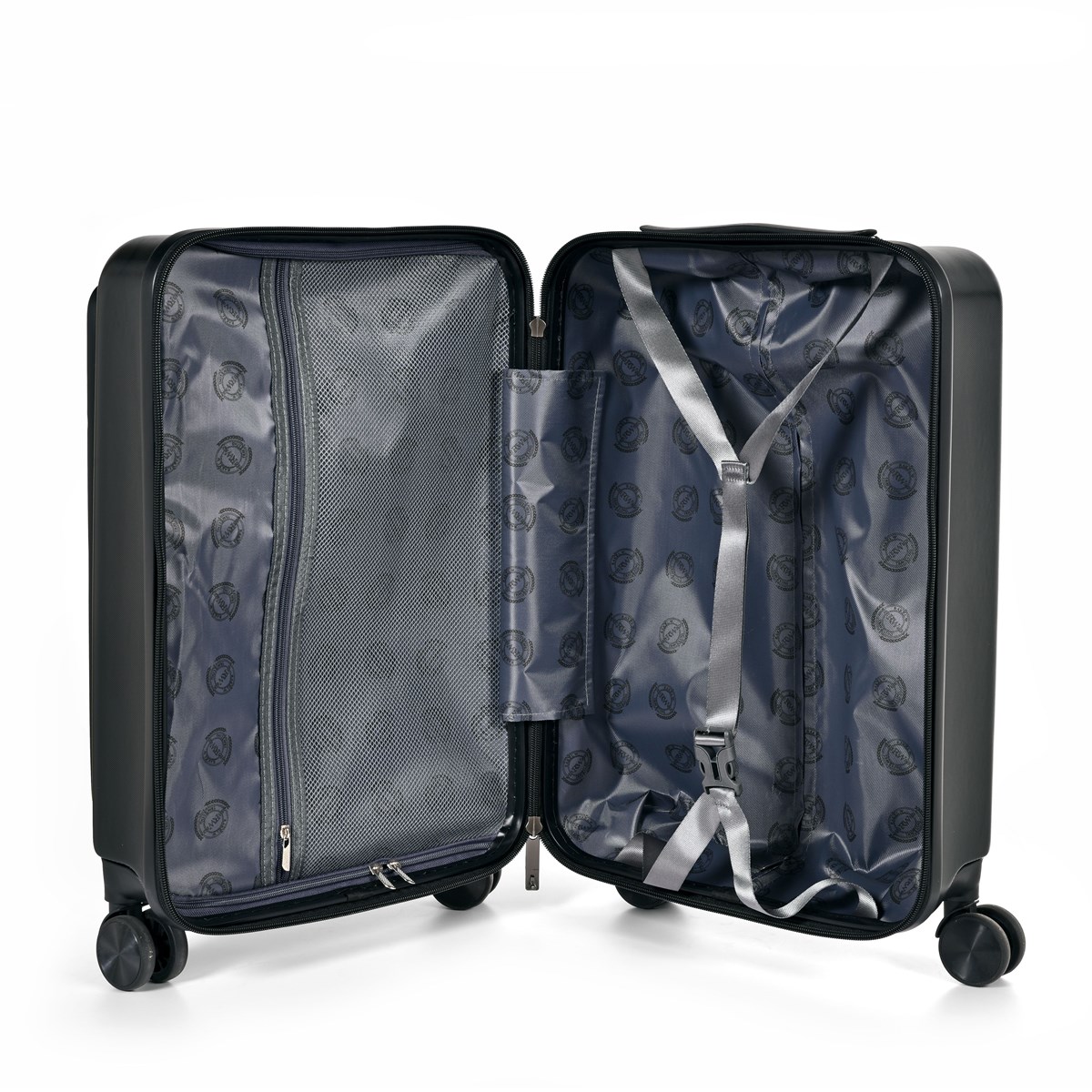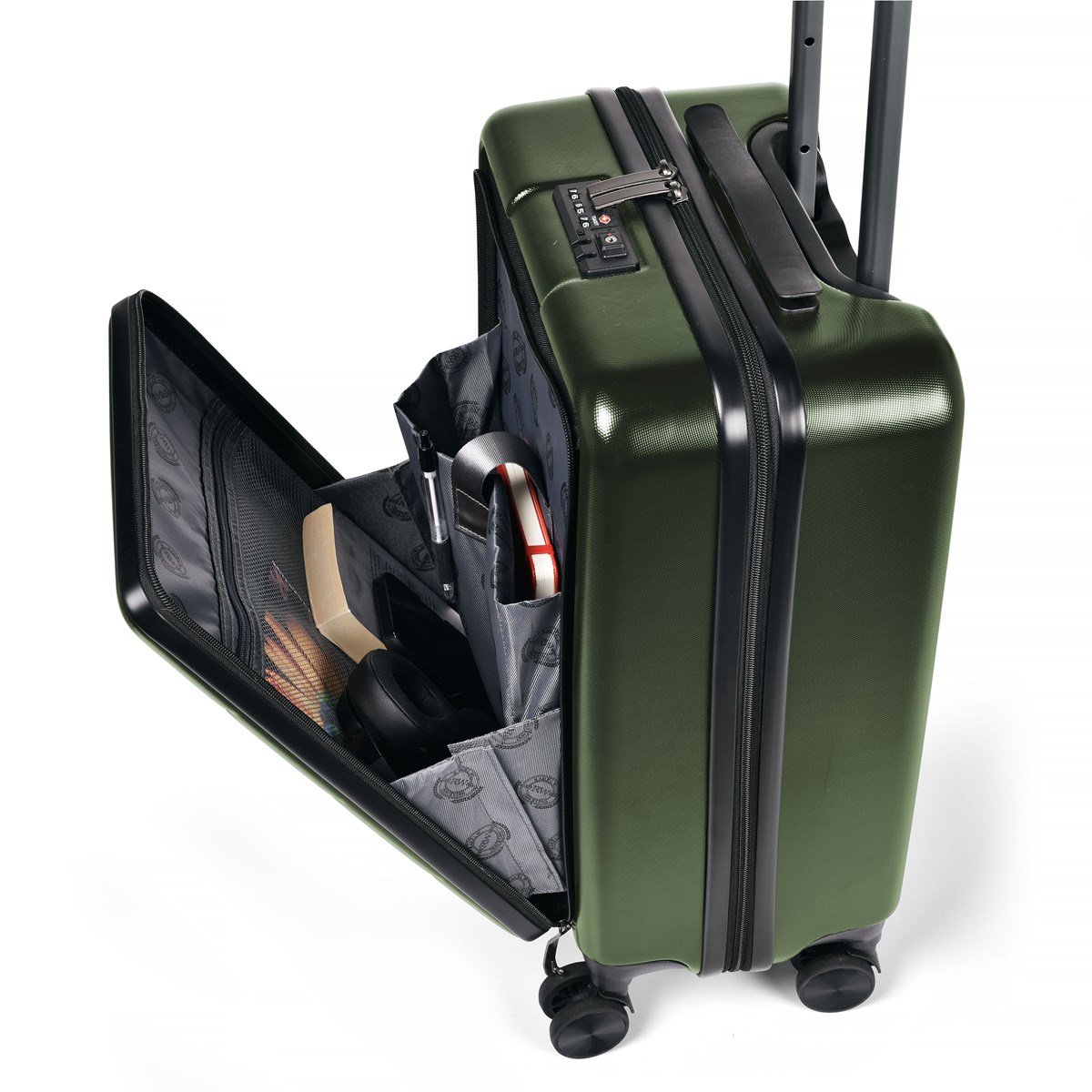 Lätt och slitstark PP-plast Frontfack för enkel åtkomst till dator Fyra dubbla gummerade hjul Inbyggt TSA-lås