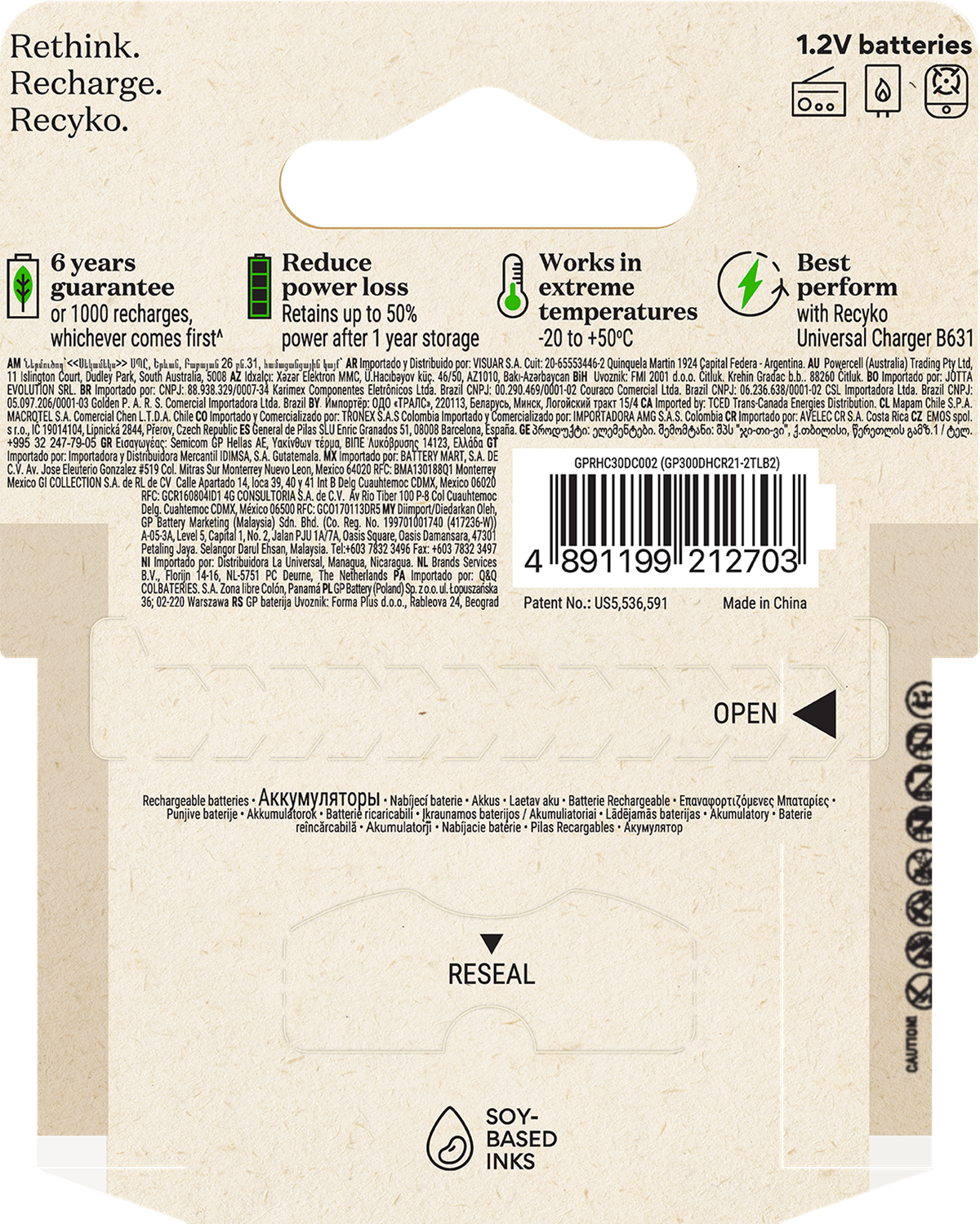 Recyko D 3000mAh batteri är ett kraftfullt laddningsbart NiMH batteri som är utvecklat för ditt vardagliga användande. De är laddade vid köp och redo att användas direkt ur förpackningen. Till skillnad från engångsbatterier så kan Recyko användas vid låga temperaturer, ända ned till - 20°C. Över 90% av batteriet, inklusive förpackning är återvinningsbart.