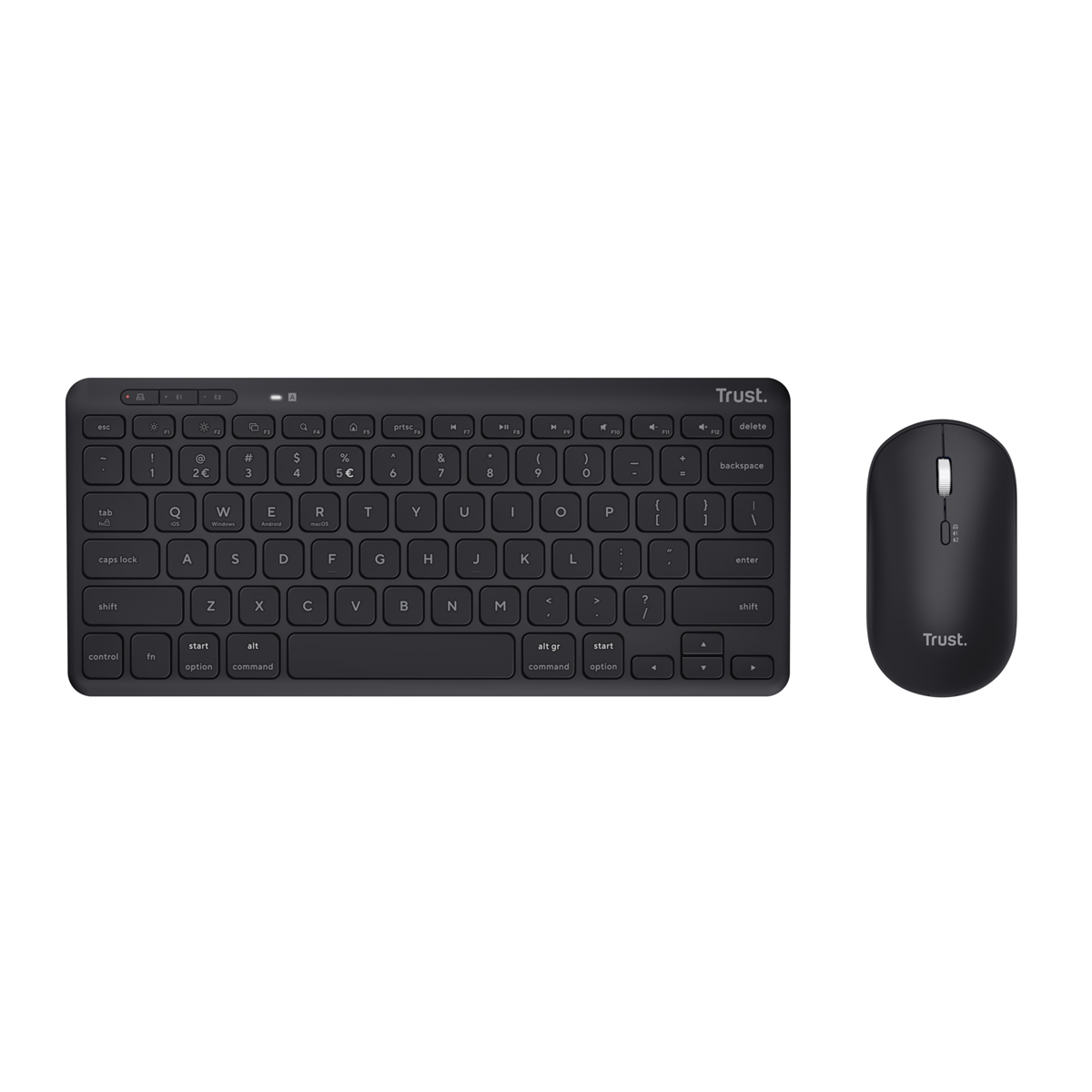 Trådlöst och uppladdningsbart kompakt tangentbord och mus med anslutning för flera enheter, tillverkad av 85% återvunnen plast. Tangentbordet har en kompakt storlek, saxtangenter med låg profil och 3-stegs höjdjusterbara gummifötter. Musen är liten och robust, vilket gör den perfekt för enkelt arbete på kontoret, hemma och på språng. Passar både till höger- och