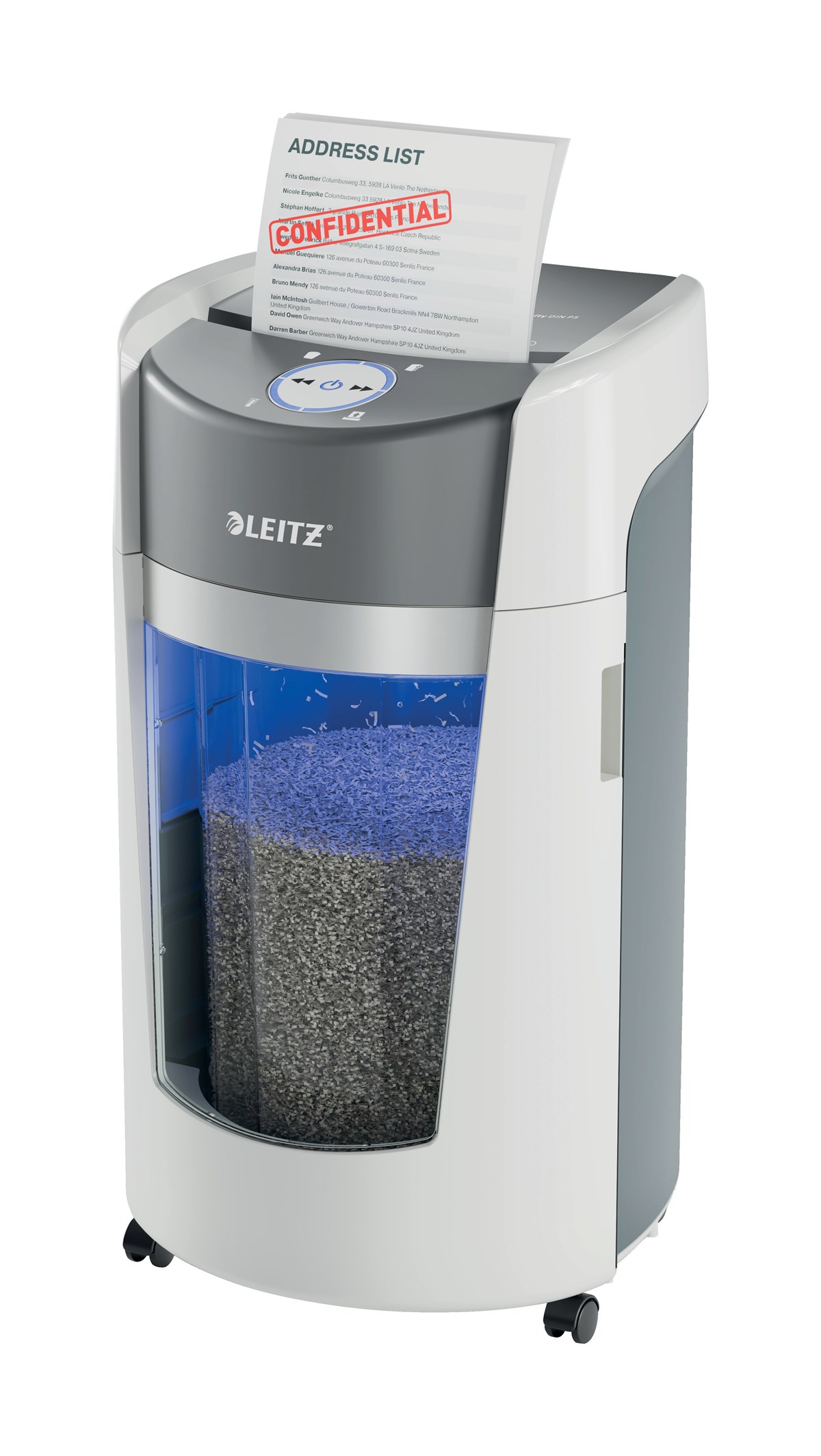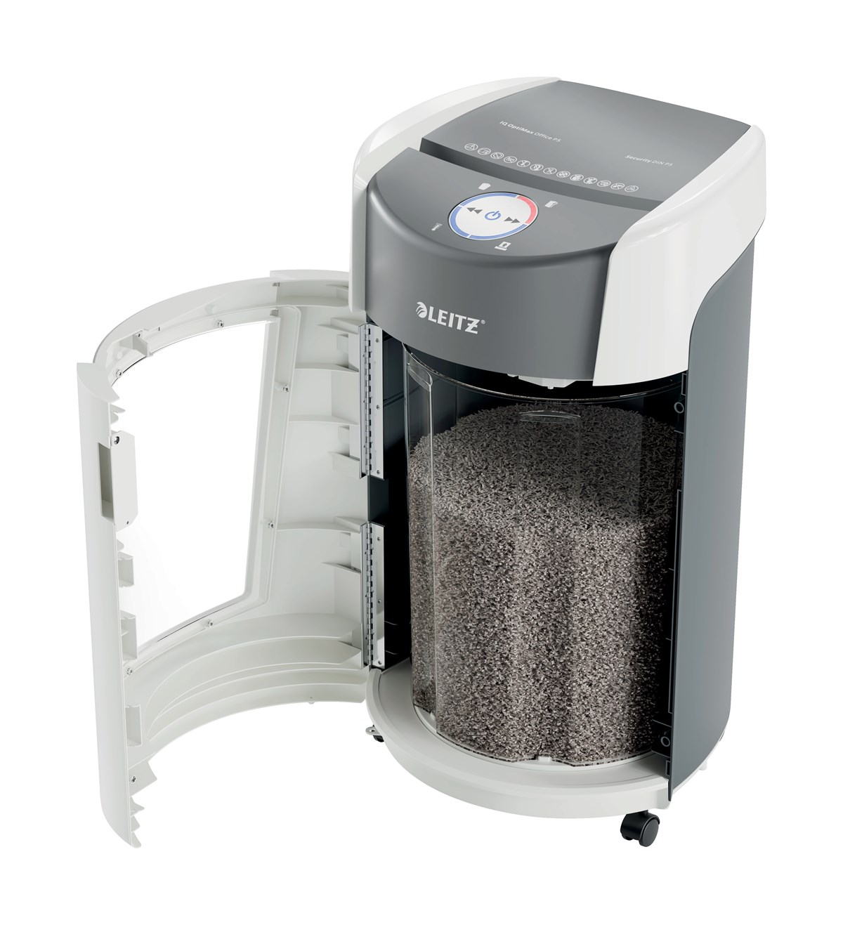 Leitz IQ OptiMax dokumentförstörare med Bin Rotation Technology (BRT) optimerar effektivt behållarens kapacitet.