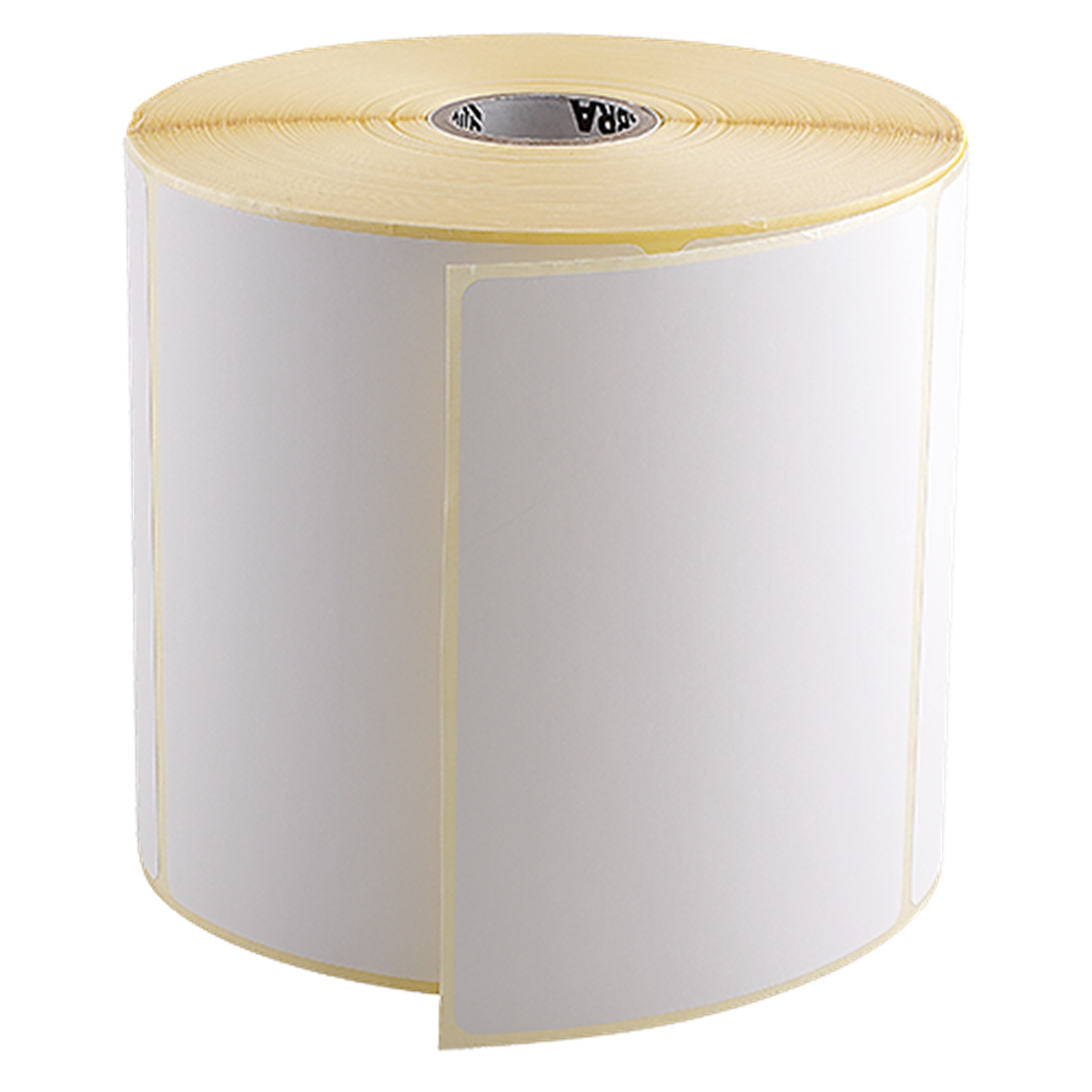 Standard, vit slätt pappersyta speciellt belagd för att ge optimal balans mellan prestanda och pris. Bestrukna, permanenthäftande pappersetiketter. 810 etiketter/rulle.