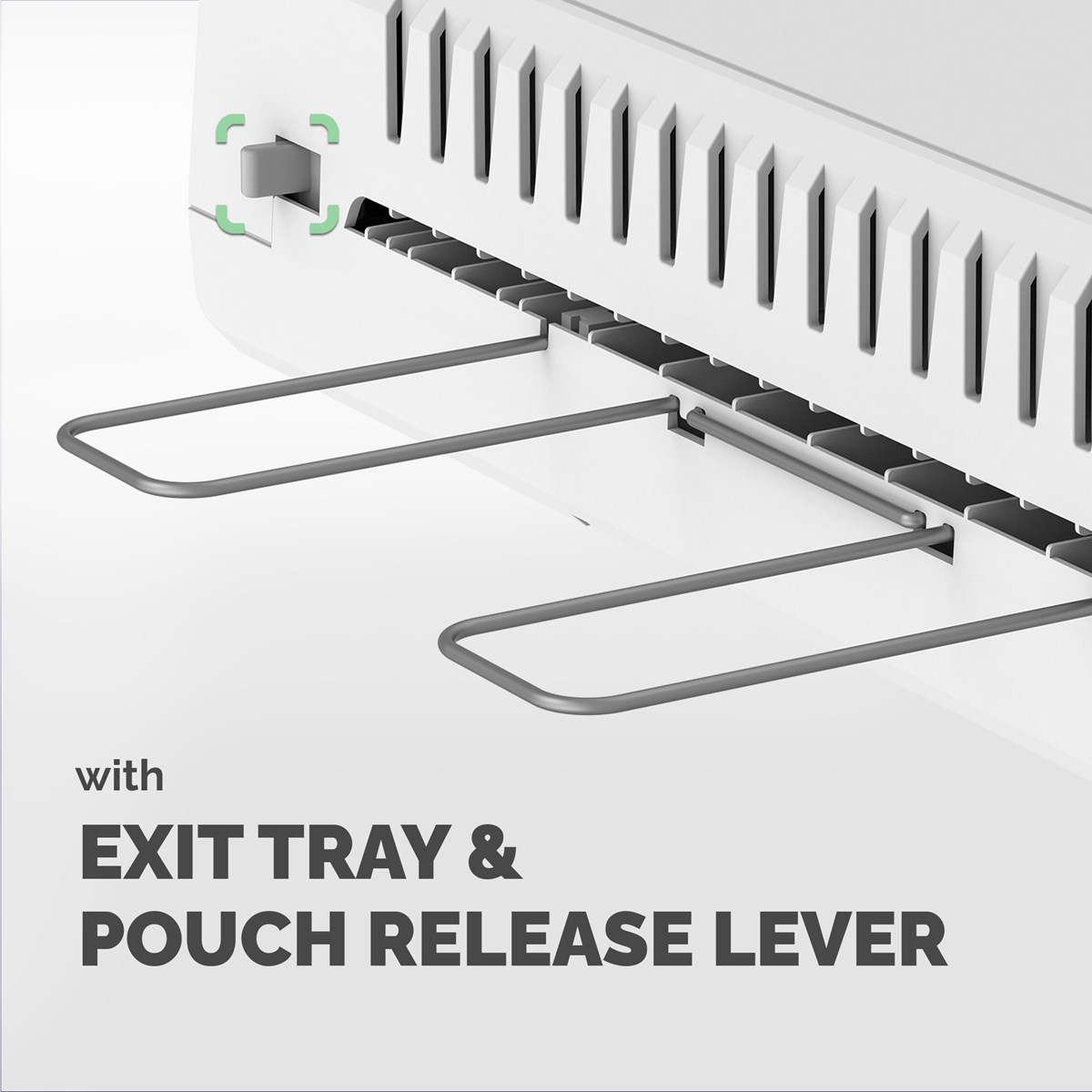 Sensor indikerar när ett dokument har matats fel och stoppar lamineringsprocessen, vilket gör att arket kan släppas och justeras. Släcks automatisk efter 30 minuter utan användning. För optimalt underhåll av din lamineringsmaskin rekommenderar vi användning av rengöringsark regelbundet. Mått: 105 x 436 x 139 mm. Garanti: 2 år.