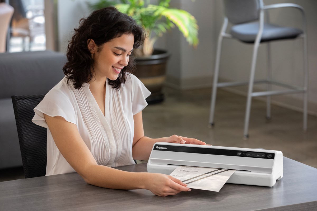 Fellowes Saturn 3i A3 lamineringsmaskin - passar det mindre kontoret. Kan både varm- och kall laminera. Inkluderar startpaket med 10 lamineringsfickor samt rengöringsark. InstaHeat Technology ger en uppvärmningstid på enbart 60 sekunder. Lamineringshastighet på 50 cm per minut. Klarar lamineringsfickor upp till 125 mikron.