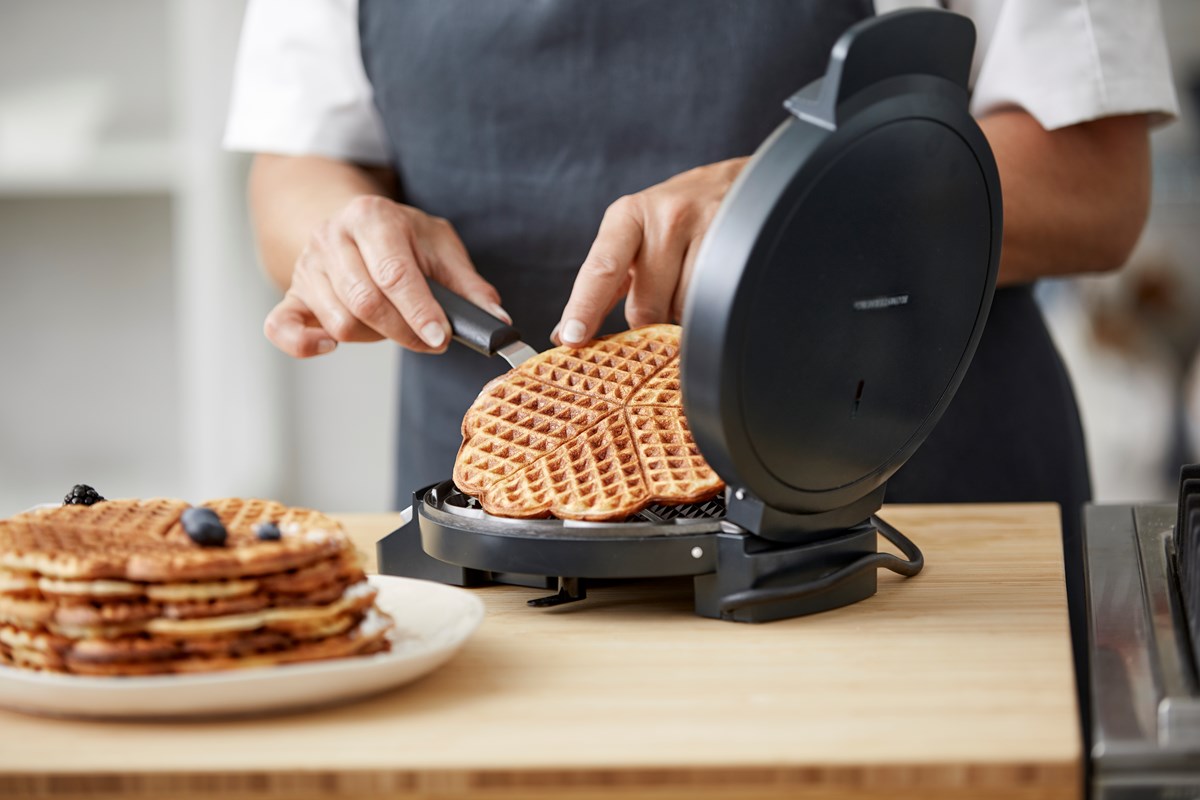 Skäm bort familjen med underbart läckra hjärtformade våfflor. Våffeljärnets plattor med en diameter på 20 cm och non-stickbeläggning ger fem hjärtformade våfflor åt gången. Värmeisolerat handtag, justerbar temperatur och kontrollampa. 1200 watt.