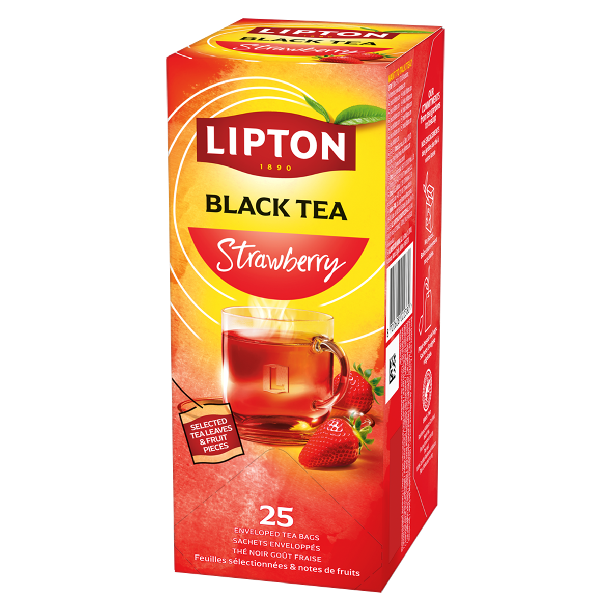 Lipton Strawberry Tea är ett svart te med smak av solmogna jordgubbar. Varje tepåse är insvept i folie för att hållas fräsch och för att skydda arom och fukt. Teet skördas på Rainforest Alliance-certifierade odlingar.
