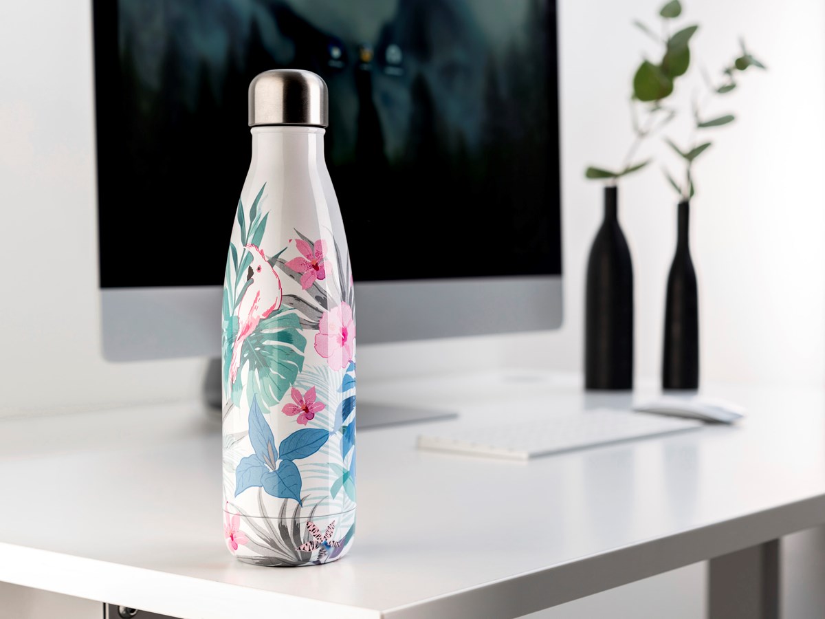Vakuumisolerad vattenflaska gjord av högklassigt rostfritt stål. Håller din dryck kall upp till 24 timmar och varm upp till 12 timmar. Stålet i flaskan är inte magnetiskt och drar därför inte till sig smuts och partiklar, vilket gör det lättare att hålla flaskan ren. Tätslutande skruvkork med BPA-fri silikontätning. 50 cl.