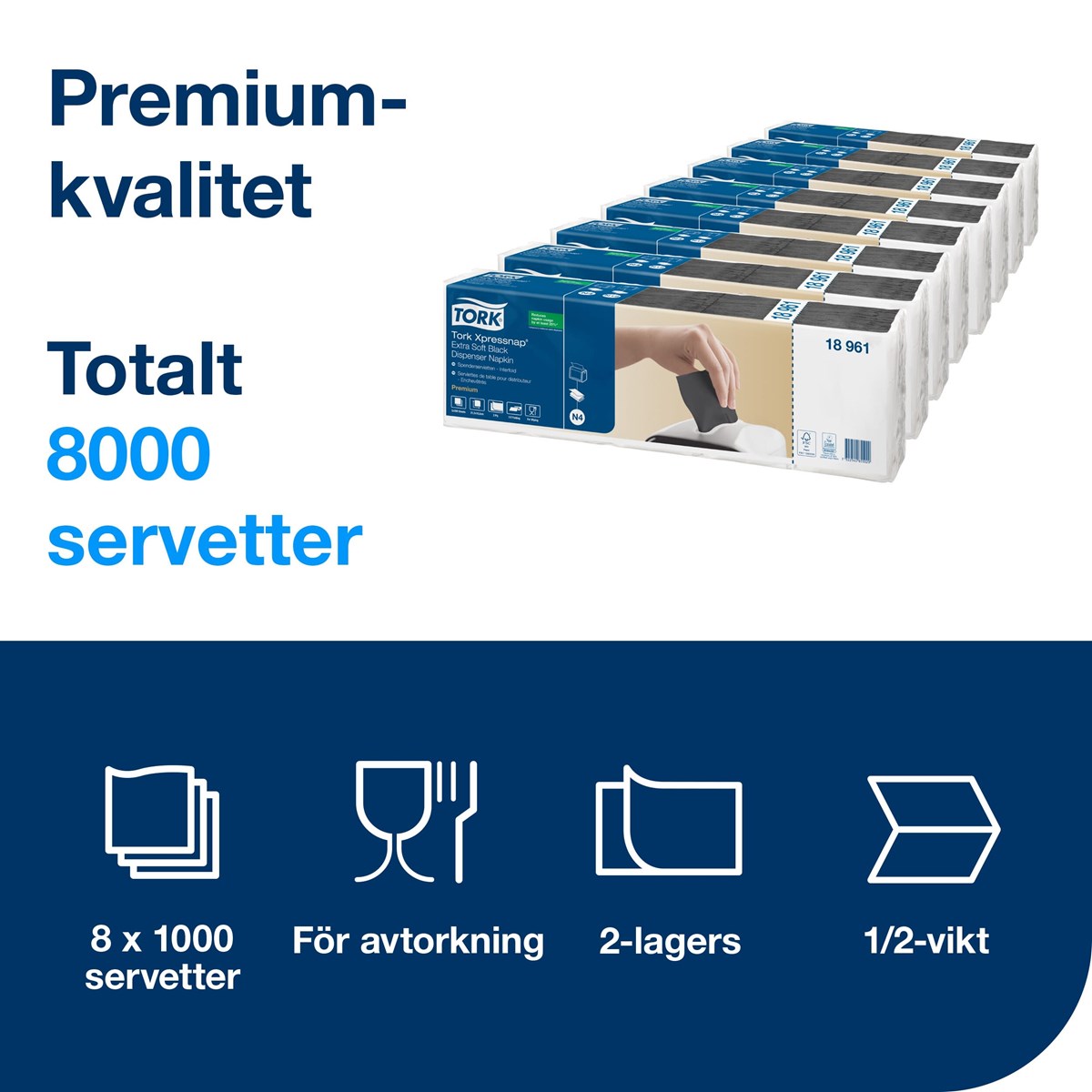 Hektiska miljöer med självservice behöver en balans mellan bekvämlighet och kvalitet – den tjocka 2-lagerskonstruktionen hos Tork Xpressnap® Extra Mjuk Dispenserservett ger dig båda två. Beställning och lagerhantering förenklas av att servetterna kan användas med alla Tork Xpressnap® Dispensrar. Det kostnadseffektiva systemet har arkvis utmatning och minskar förbrukningen med 25 % jämfört med traditionella dispensrar. Det förbättrar också hygienen då gästerna bara rör det de tar.