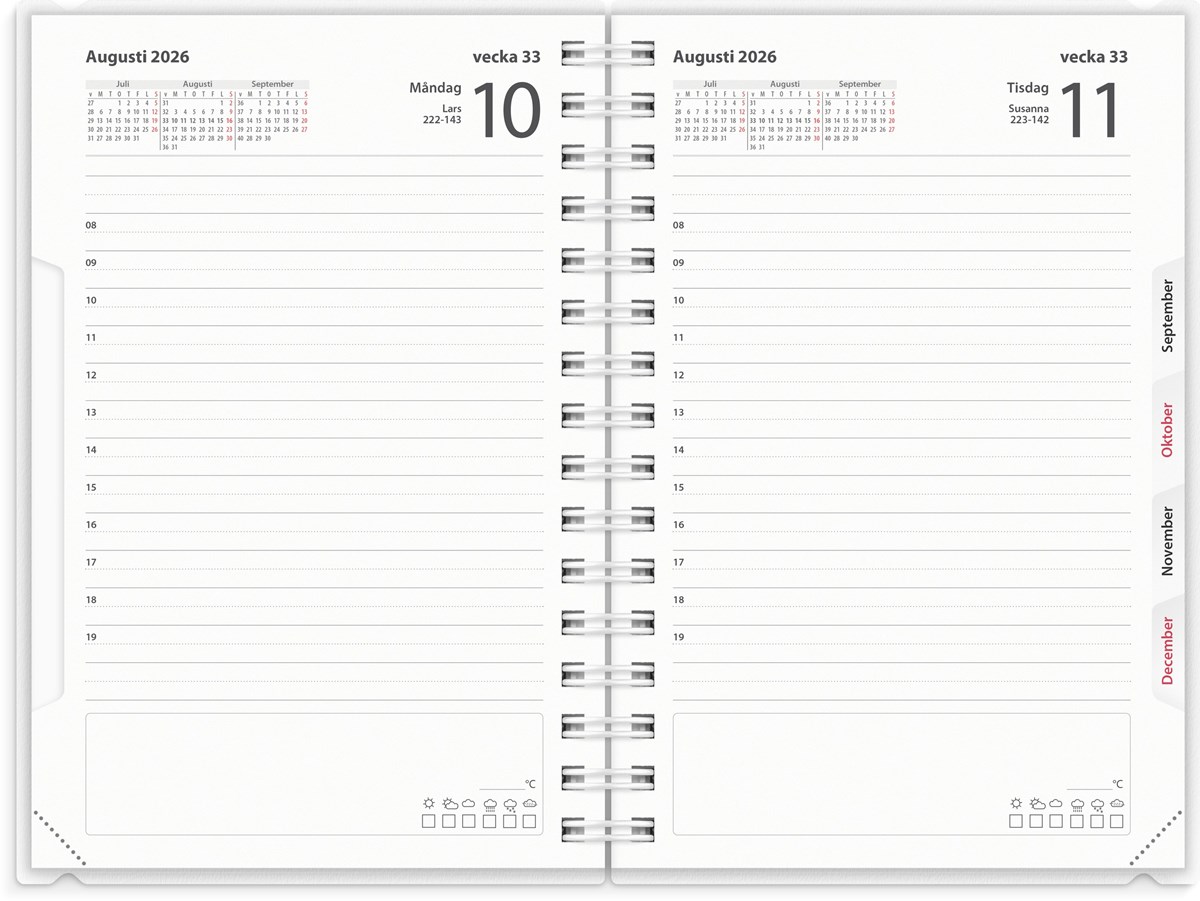 Framsidan kan du ändra året om, kalendern innehåller fyra motiv som du lätt kan byta mellan eller varför inte skapa ett eget? För att detta ska vara möjligt och fortsatt vara ett praktiskt omslag så är omslaget gjort i plast. Burdes Dagbok har en dag per sida med timindelning 08-19 vilket gör att den passar både för detaljerad planering och dagboksanteckningar. Genom att sortera dina tankar kan du lära dig mer om dig själv, få enklare att hitta lösningar på problem och dessutom bättra på minnet.