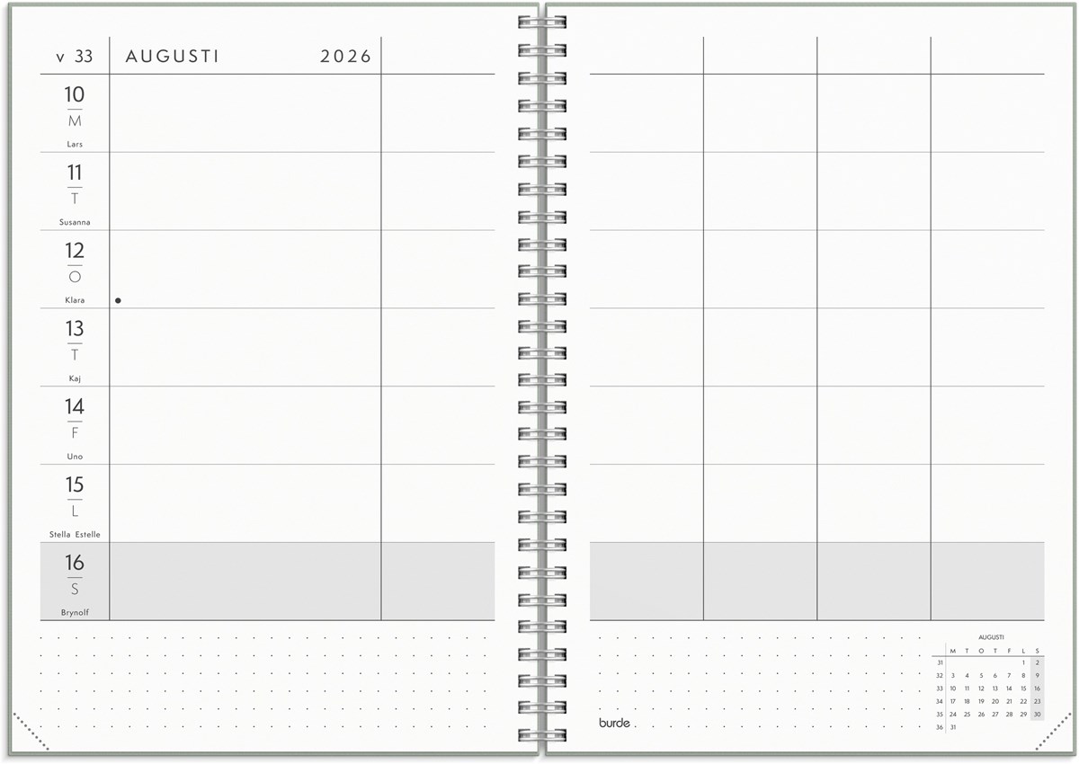 Behöver du hålla koll på fler än dig själv eller kanske olika projekt? Då är veckoplaneraren Plan more den perfekta hjälpredan. I den här kalendern finns 5 extra kolumner för varje dag och du kan smidigt få en överblick över alla aktiviteter, möten och planer.
