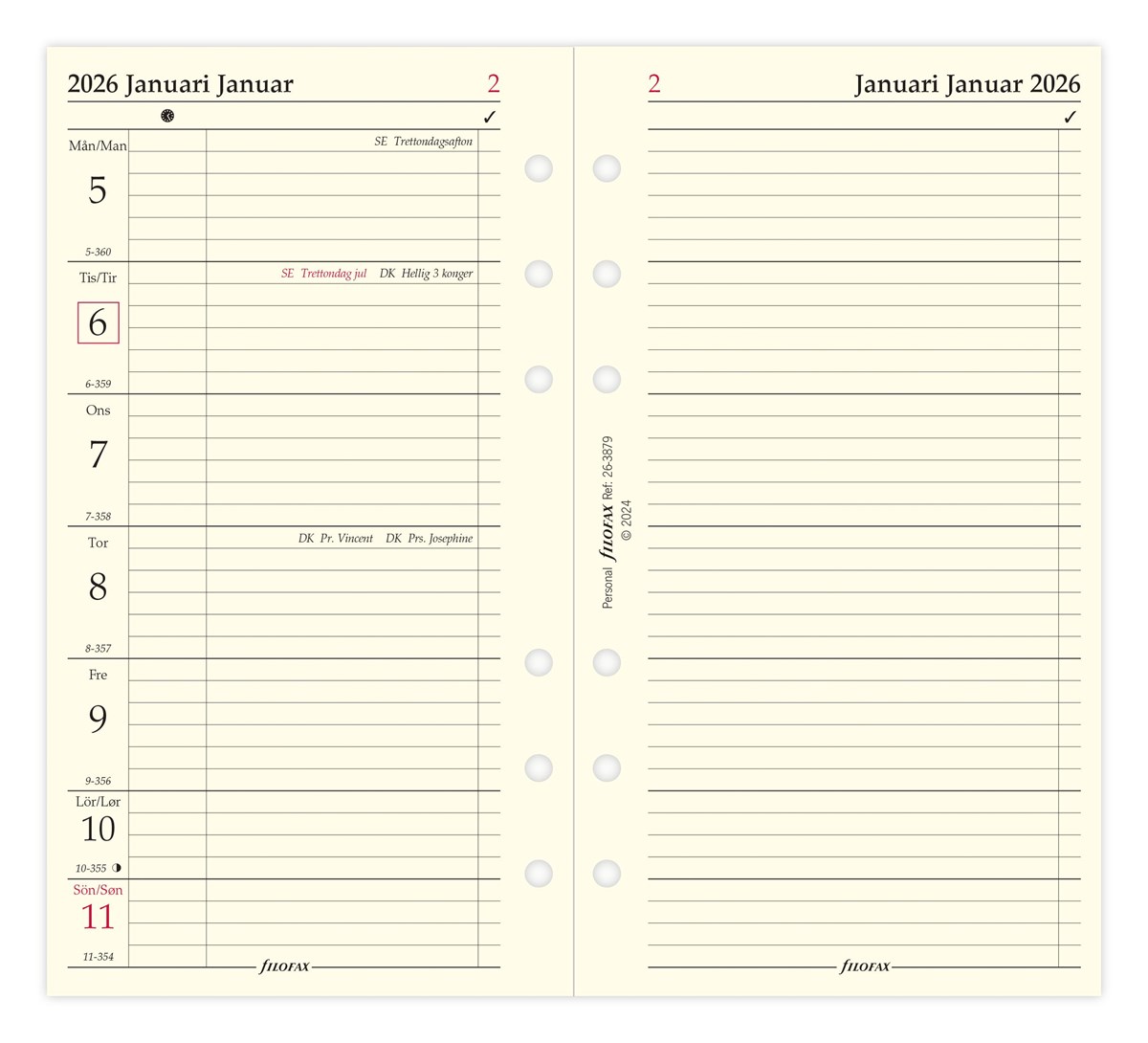Dagbok Filofax Personal 2026 vecka/sida + noteringssida