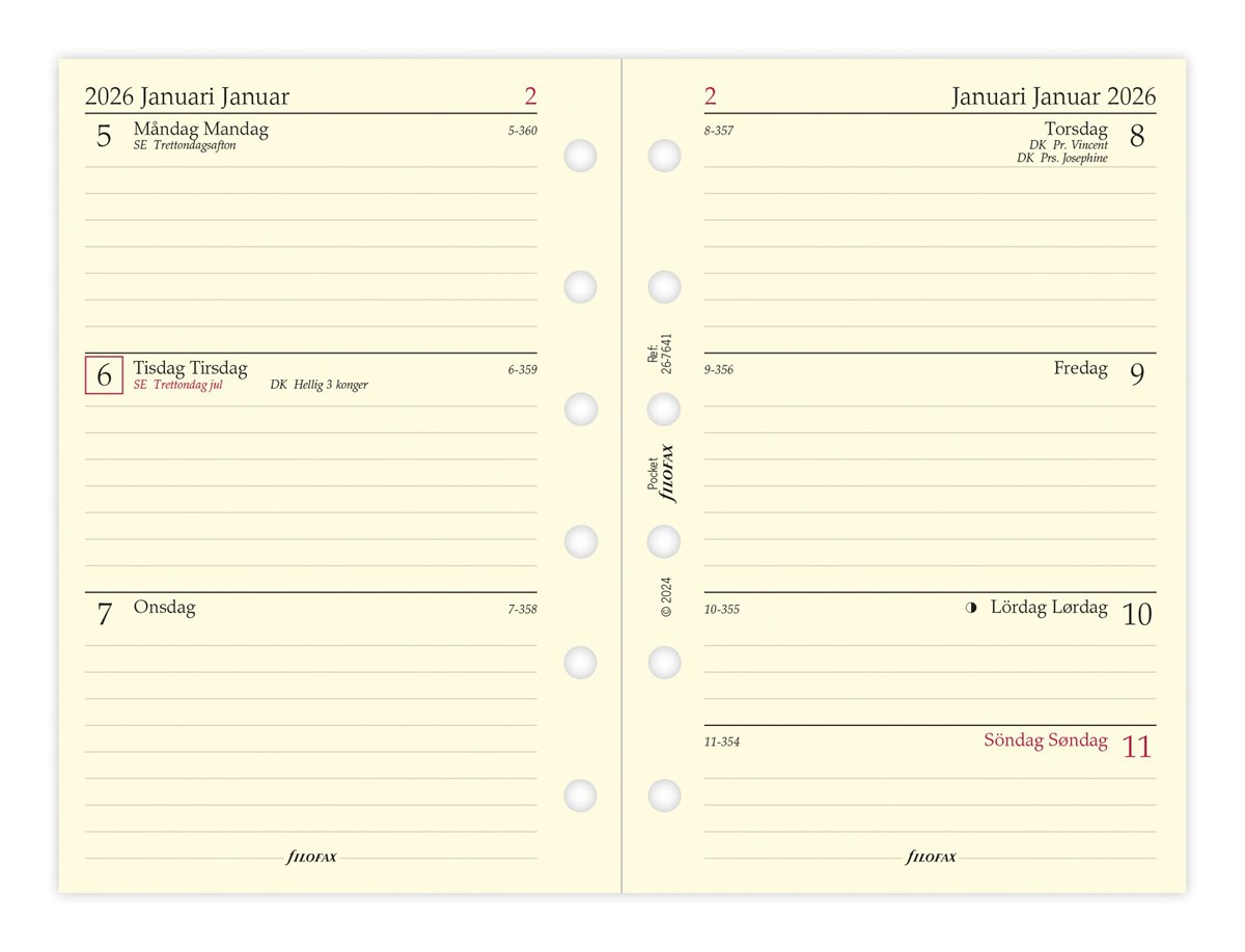 Dagbok Filofax Pocket 2026 vecka/uppslag