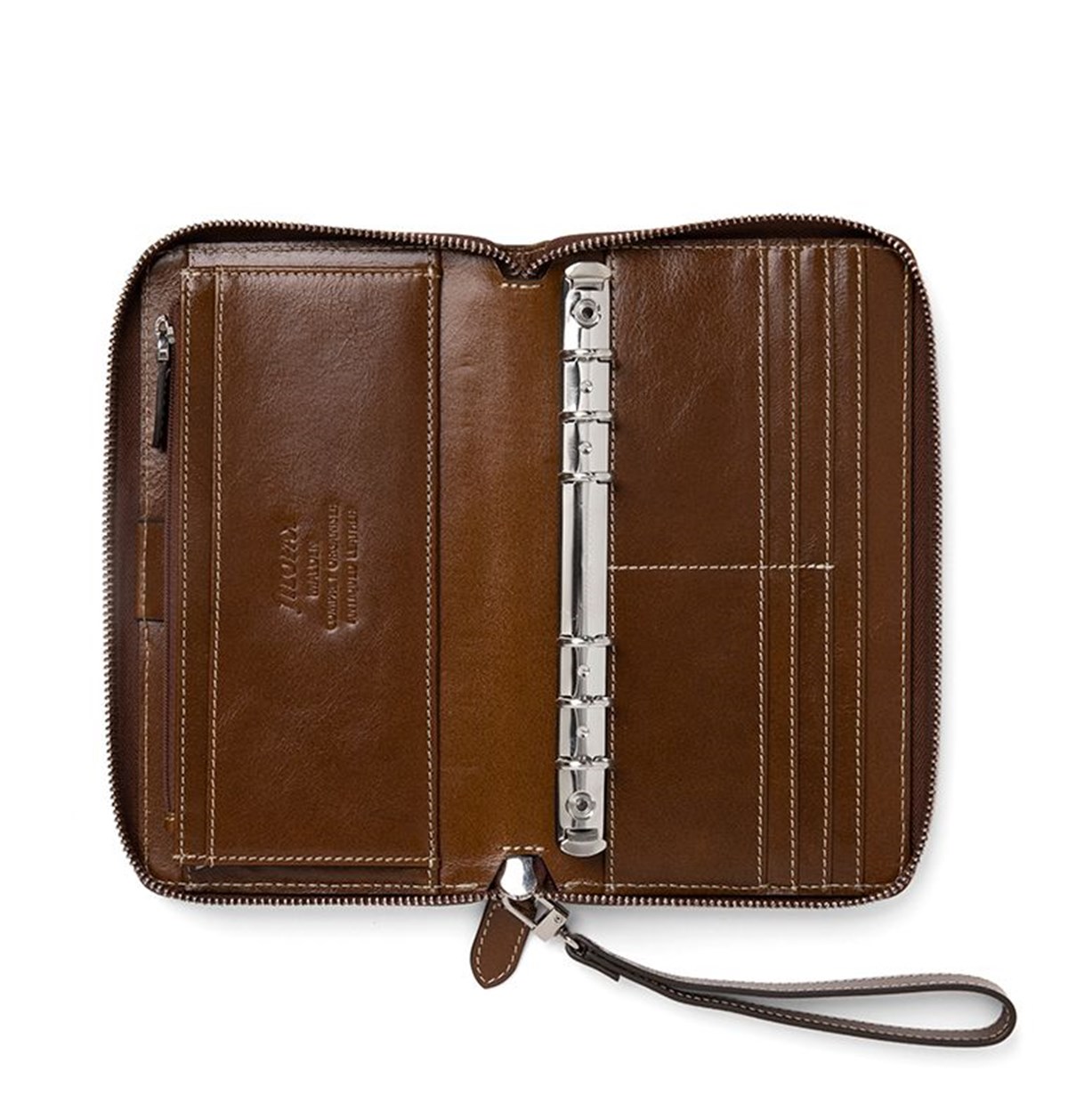 Malden systemkalender i ett delikat premiumläder. Rustik, men ändå mjuk och följsam med kraftig dekorsöm och slejf. Praktisk ficka med dragkedja på insidan. Inbyggd RFID-kortskydd för att skydda kredit- och betalkort, en avtagbar handledsrem och en avtagbar ringmekanism för att möjliggöra användning som handväska endast. För din dagliga planering och projektledning innehåller den också en dagbok (vecka per uppslag) tryckt på 80g lyxig krämfärgat, papper.