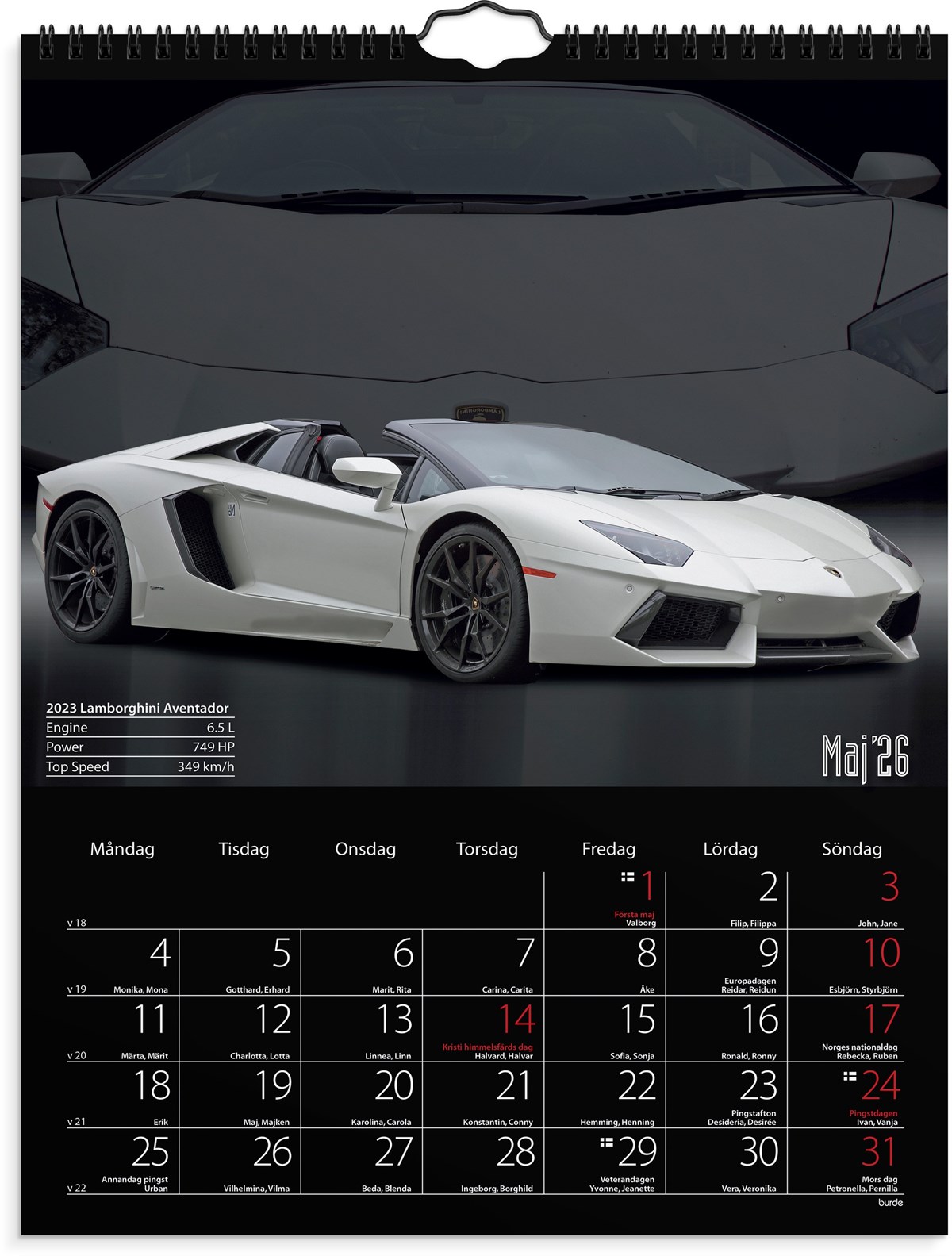 Format: 295x390 mm. Layout: Månad/blad. Kalendarium: 2026-01-01 - 2026-12-31. Spiralbunden. Innehåll: Flaggdagar, Helgdagar/aftnar, Namnsdagar, Temadagar/händelser. Antal sidor: 12. Miljöinformation: FSC®.