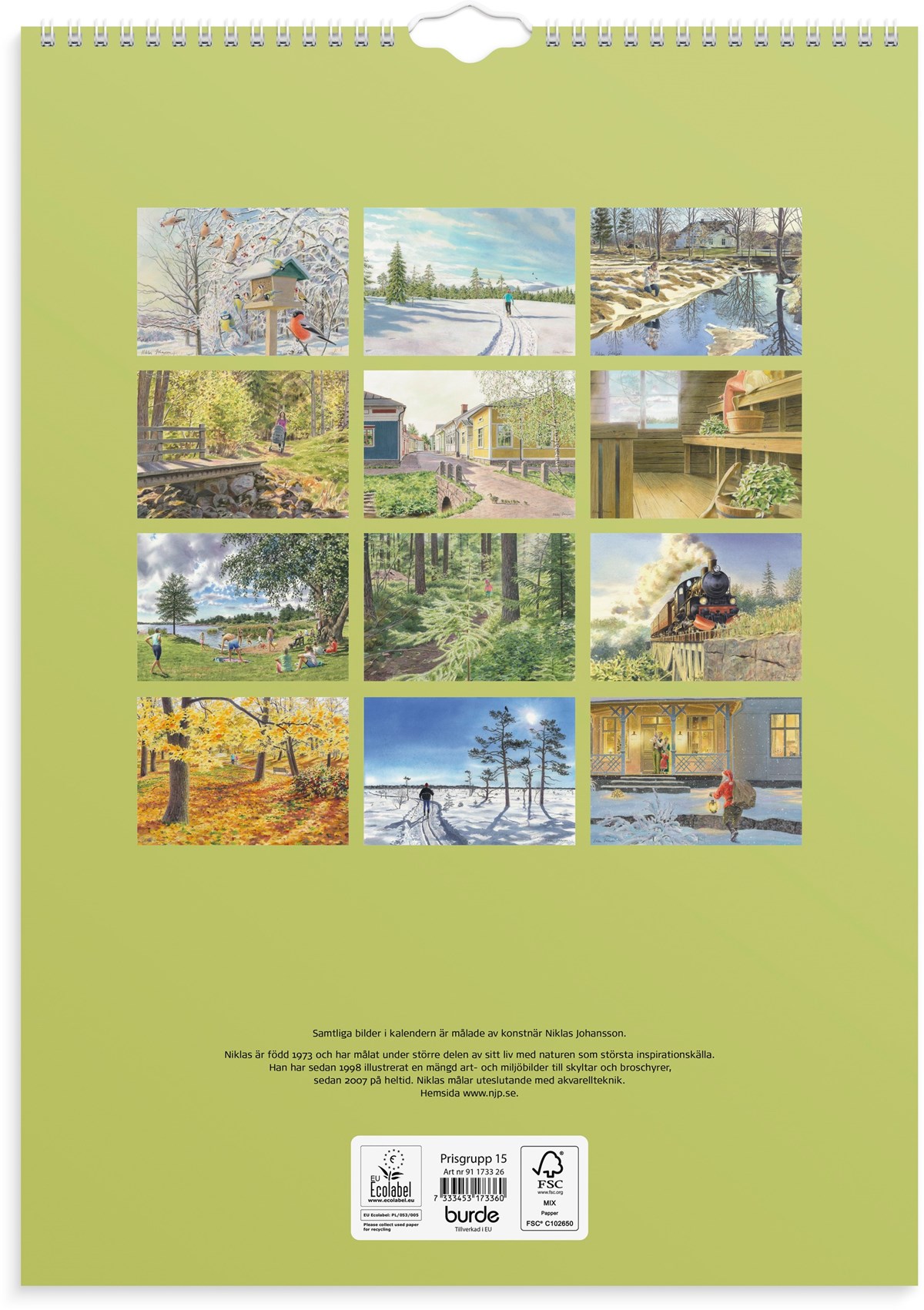 Väggkalender med vackra årstidsmotiv från Sverige, målade av Niklas Johansson.
