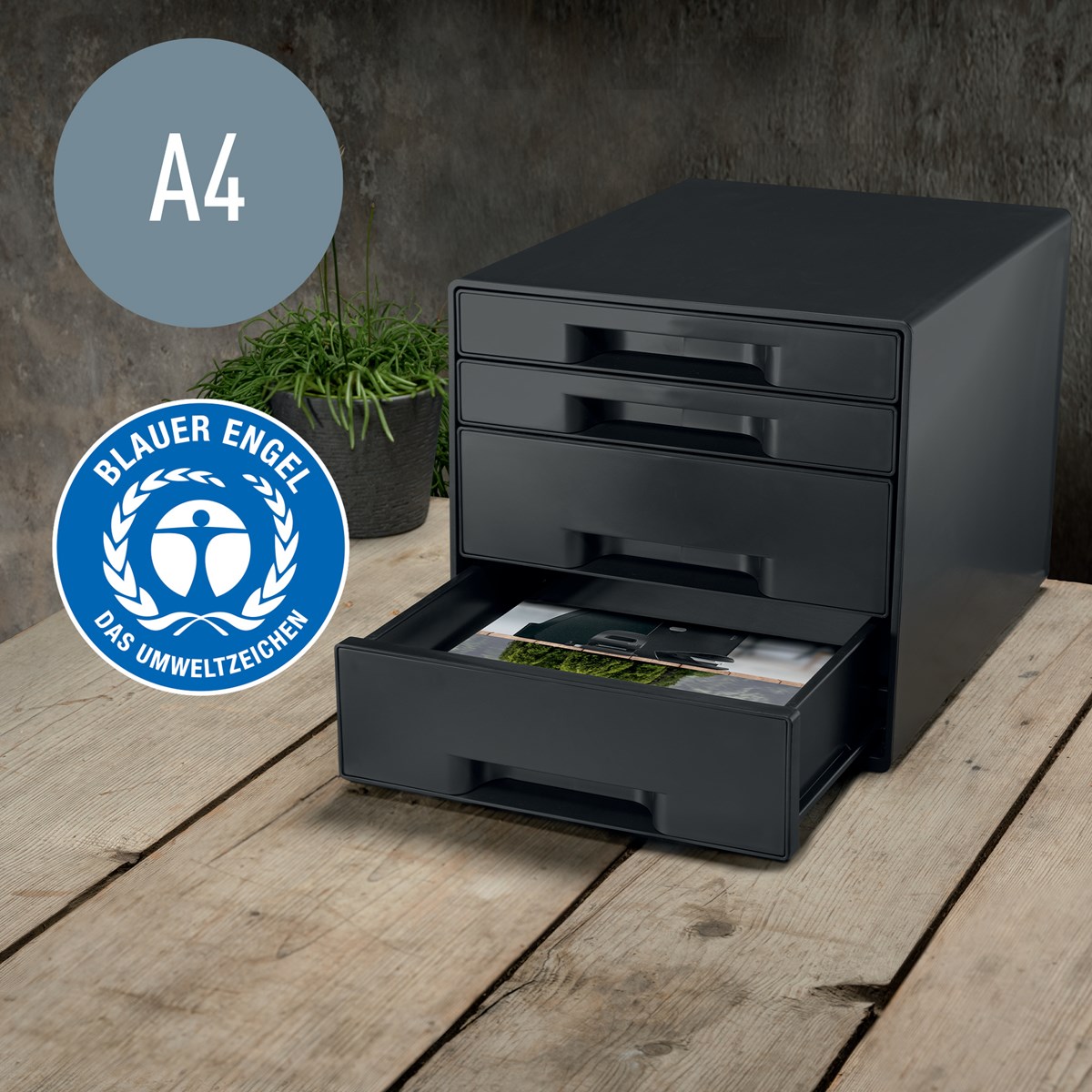 Förvaringslåda av högsta kvalitet i matt finish, tillverkad av minst 90% återvunnen plast, lämplig för A4 Maxi. Klimatneutral genom CO2-reduktion och kompensation, 100% återvinningsbar och med miljöcertifiering från Blue Angel. En robust förvaringslåda som fint kompletterar de andra produkterna från Leitz Recycle-sortimentet och är gjord för att hålla länge. Miljövänliga och moderna kontorsprodukter som passar bra hemma och på kontoret. Med det miljövänliga Recycle-sortimentet från Leitz kan du både förbättra din kontorsmiljö - och miljön på vår planet.