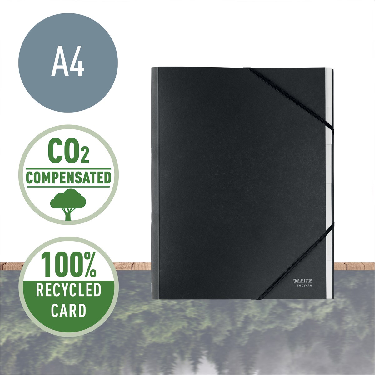 Ögonblickande, högkvalitativ sorterarmapp. Mycket praktisk lösning för att organisera dokument för ett litet projekt. Du kan dela in dokumenten i olika fack, efter typ eller prioritet. Tillverkad av 100% återvunnen kartong, klimatneutral genom CO2-reduktion och kompensation, 100% återvinningsbar och med miljöcertifiering från Blue Angel. Den här robusta och praktiska projektboken kompletterar perfekt andra produkter från Leitz Recycle-sortimentet och är gjord för att hålla länge. Miljövänliga och moderna kontorsprodukter som passar bra hemma och på kontoret. Med det miljövänliga Recycle-sortimentet från Leitz kan du både förbättra din kontorsmiljö - och miljön på vår planet.