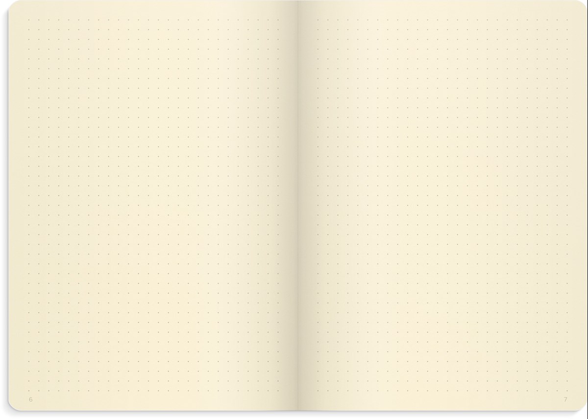En stilren, exklusiv inbunden DotNotes med cremefärgat papper med ett omslag som är mjukt och följsamt. Den ligger plant på bordsytan när du skriver tack vare bindningstekniken som tillåter DotNotes att öppnas upp helt vid användning. Vår DotNotes är perfekt för den som vill börja med Bullet Journal. Skriv ner idéer, din planering, samla alla att göra-listor, post-its och anteckningar på ett och samma ställe. Organisera, kladda, skriv eller måla, använd den som kreativ dagbok. På ”Content”-sidorna skapar du ditt eget register medan du bygger upp din anteckningsbok eller kalender på ett snyggt och kreativt sätt.