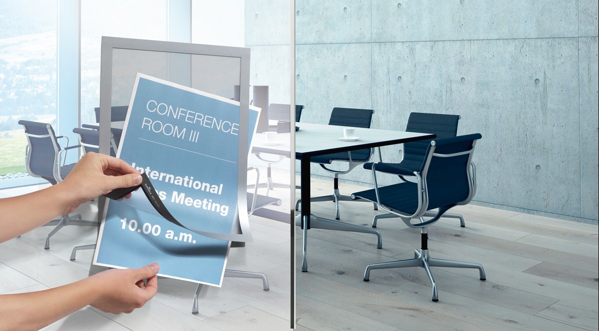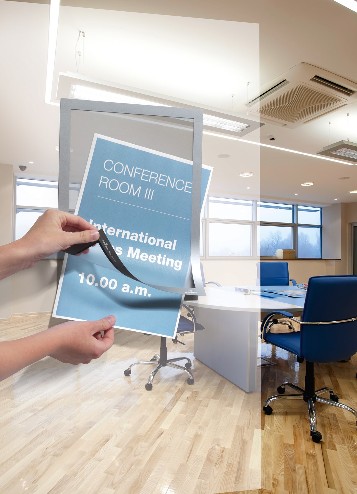 Innehållet kan snabbt sättas in och bytas ut tack vare den öppningsbara magnetramen