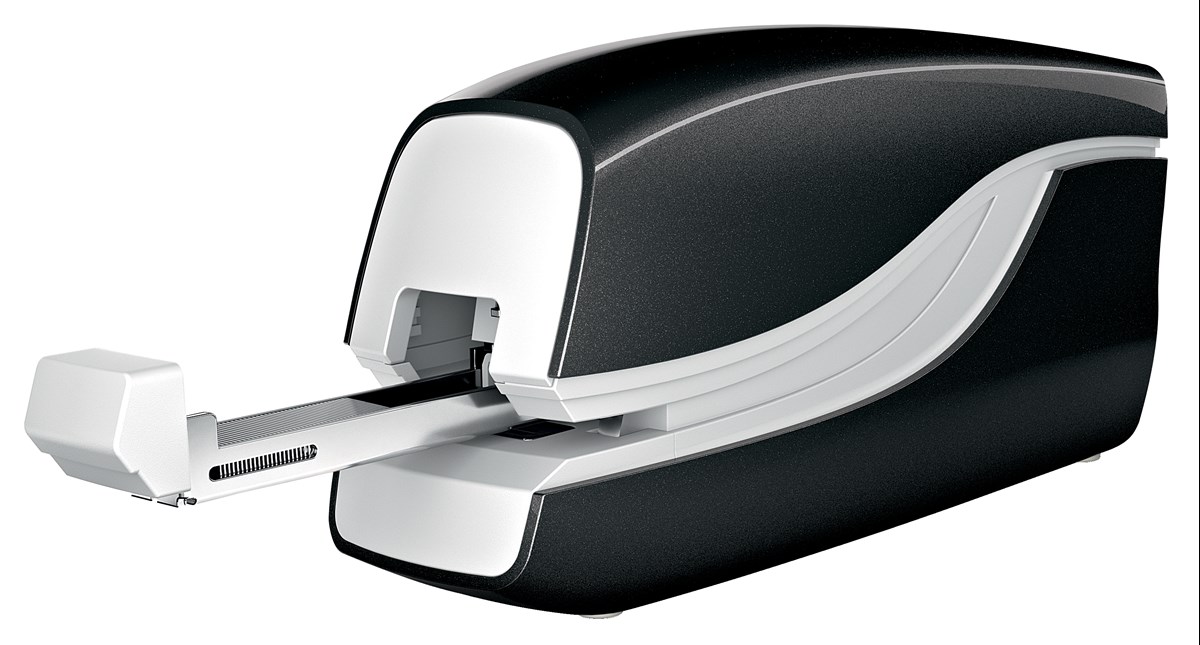 Idealisk vid frekvent användning. Häftar upp till 10 ark (80 g papper). Klammer: nr. 10 E1. Drivs med 4 st AA-batterier (ingår ej). 3 års garanti vid användning av Leitz klammer.