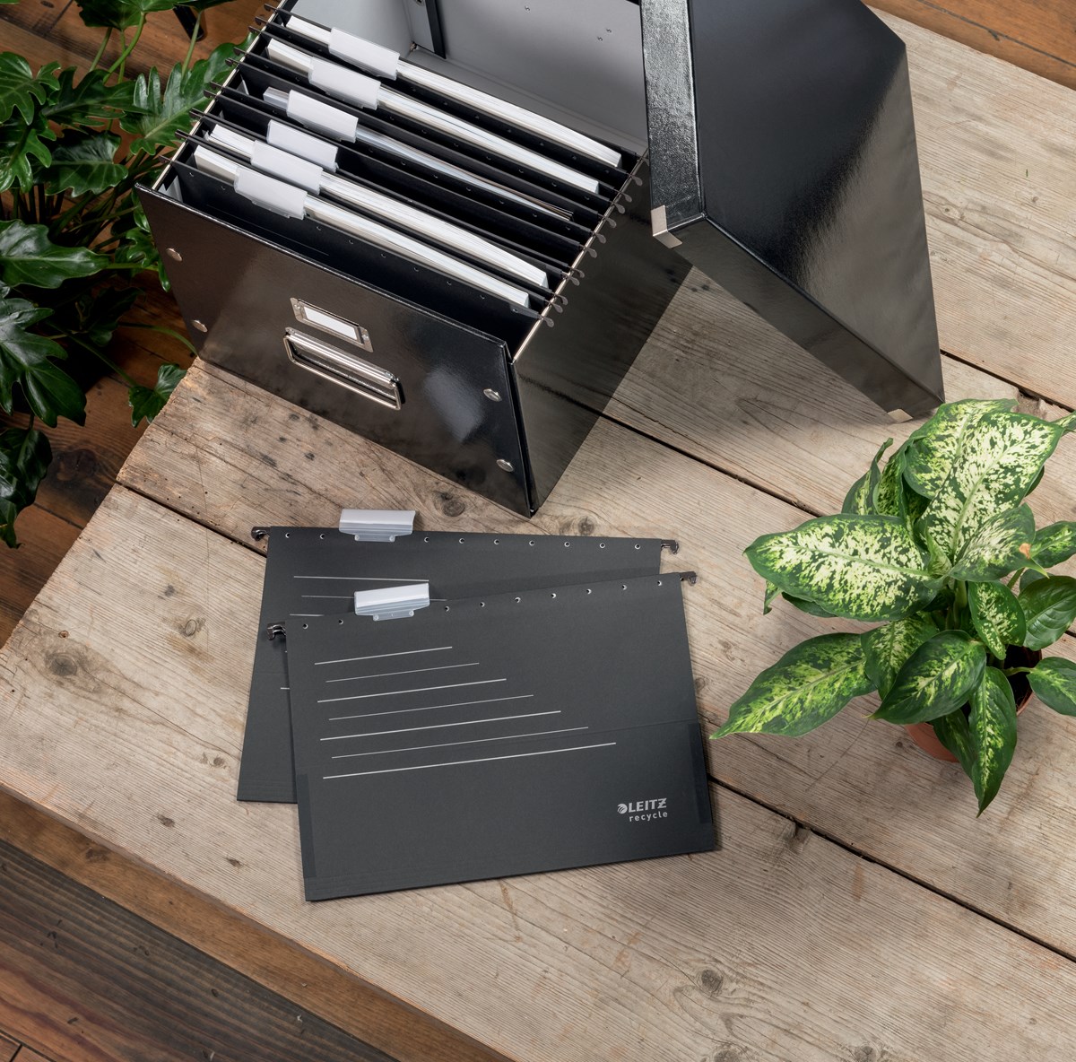 Stilren, högkvalitativ hängmapp med v-botten som passar för A4. 100% återvunnen kartong, klimatneutral genom CO2-reduktion och kompensation, 100% återvinningsbar och med miljöcertifiering från Blue Angel. Maximera förvaringsutrymmet med vertikal arkivering för att hålla papper tillgängliga och organiserade. De starka och hållbara skenor klarar tung användning och den medföljande etiketthållaren hjälper till att organisera och identifiera innehållet. Den här robusta hängmappen är gjord för att hålla länge och kompletterar andra produkter från Leitz Recycle-sortimentet. Miljövänliga och moderna kontorsprodukter som passar bra hemma och på kontoret. Med det miljövänliga Recycle-sortimentet från Leitz kan du både förbättra din kontorsmiljö - och miljön på vår planet.