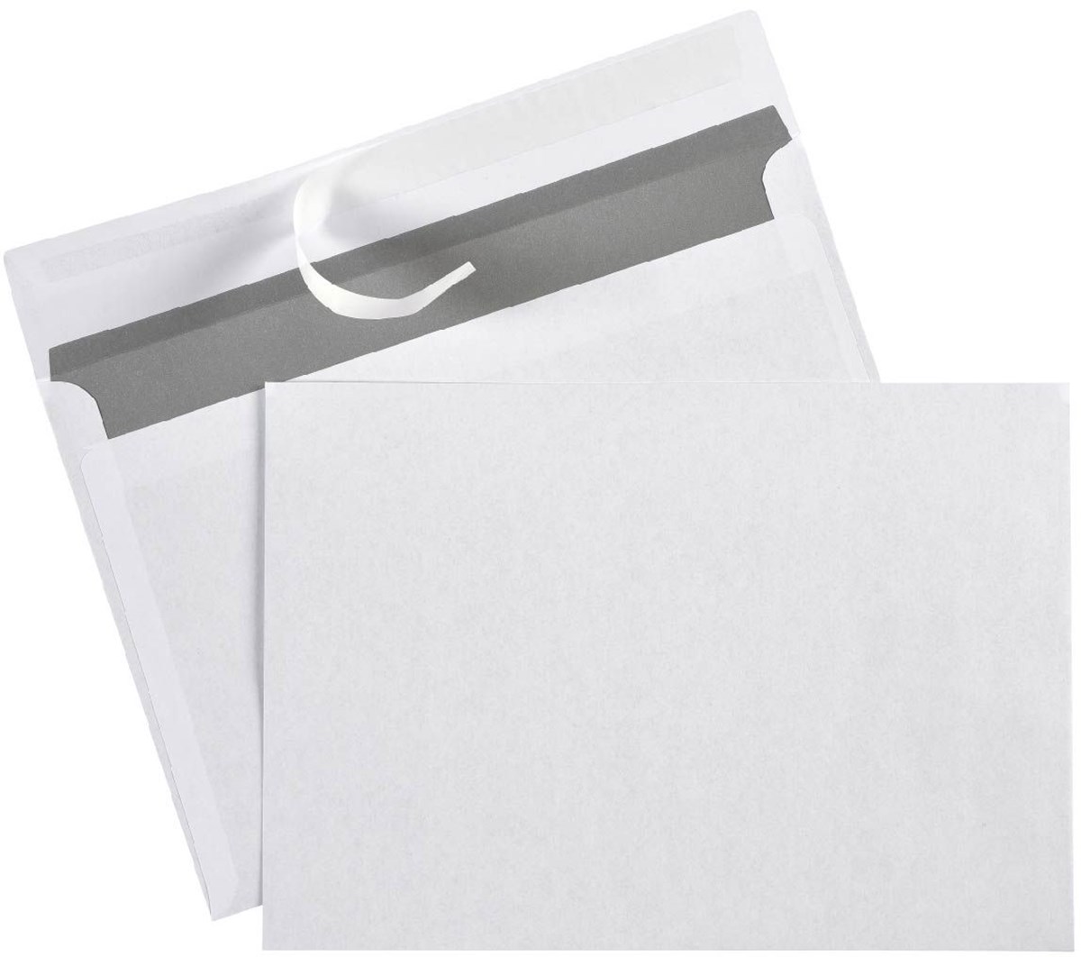 Självhäftande kuvert med Peel & Seal. Vitt kuvert med grått innertryck. Konsumentpackade.