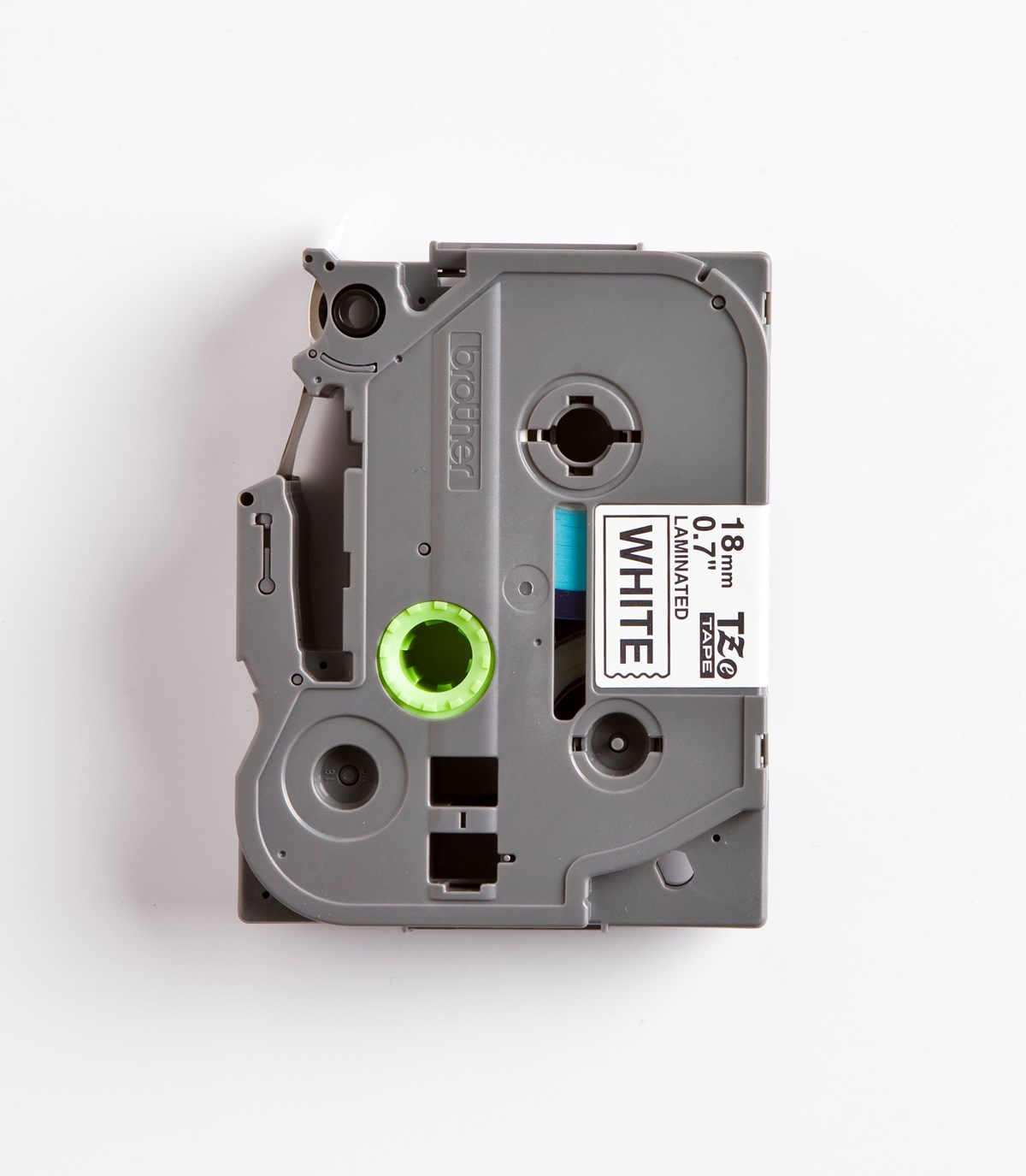 TZe tapekassetter är enkla att installera, finns i olika bredder, färger och material och säkerställer att din P-touch-märkmaskin uppfyller dina märkningsbehov. Mått: 18 mm x 8 m.