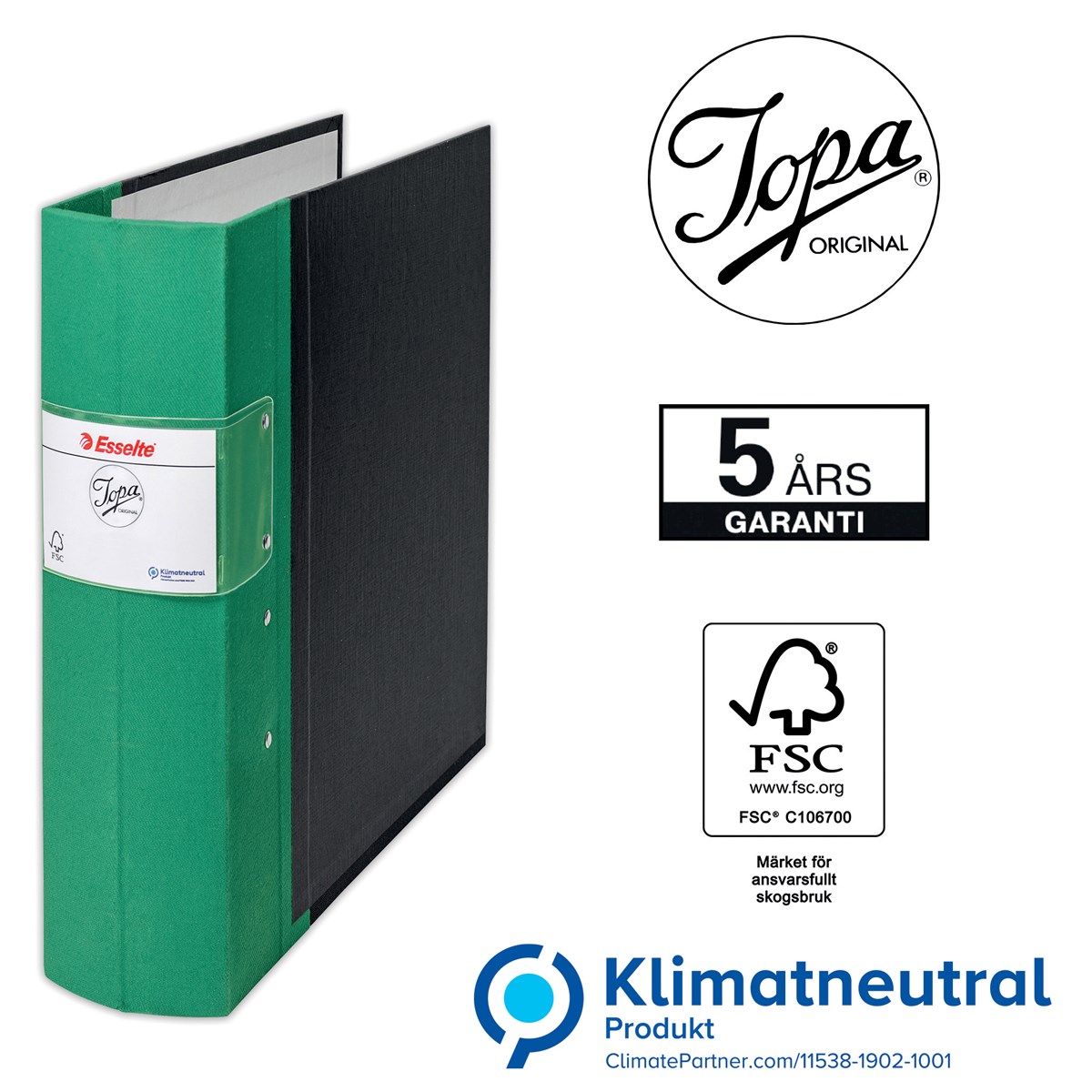 Esselte Jopa är en svensk uppfinningsrikedom i sitt original. Tillverkades redan 1889. Som världens första klimatneutrala träryggspärm blir de låga koldioxidutsläppen ännu lägre genom pågående lean-initiativ. (Läs mer: climatepartner.com/11538-1902-1001). Dessutom är alla träbaserade delar i pärmen godkända av The Forest Stewardship Council (FSC).