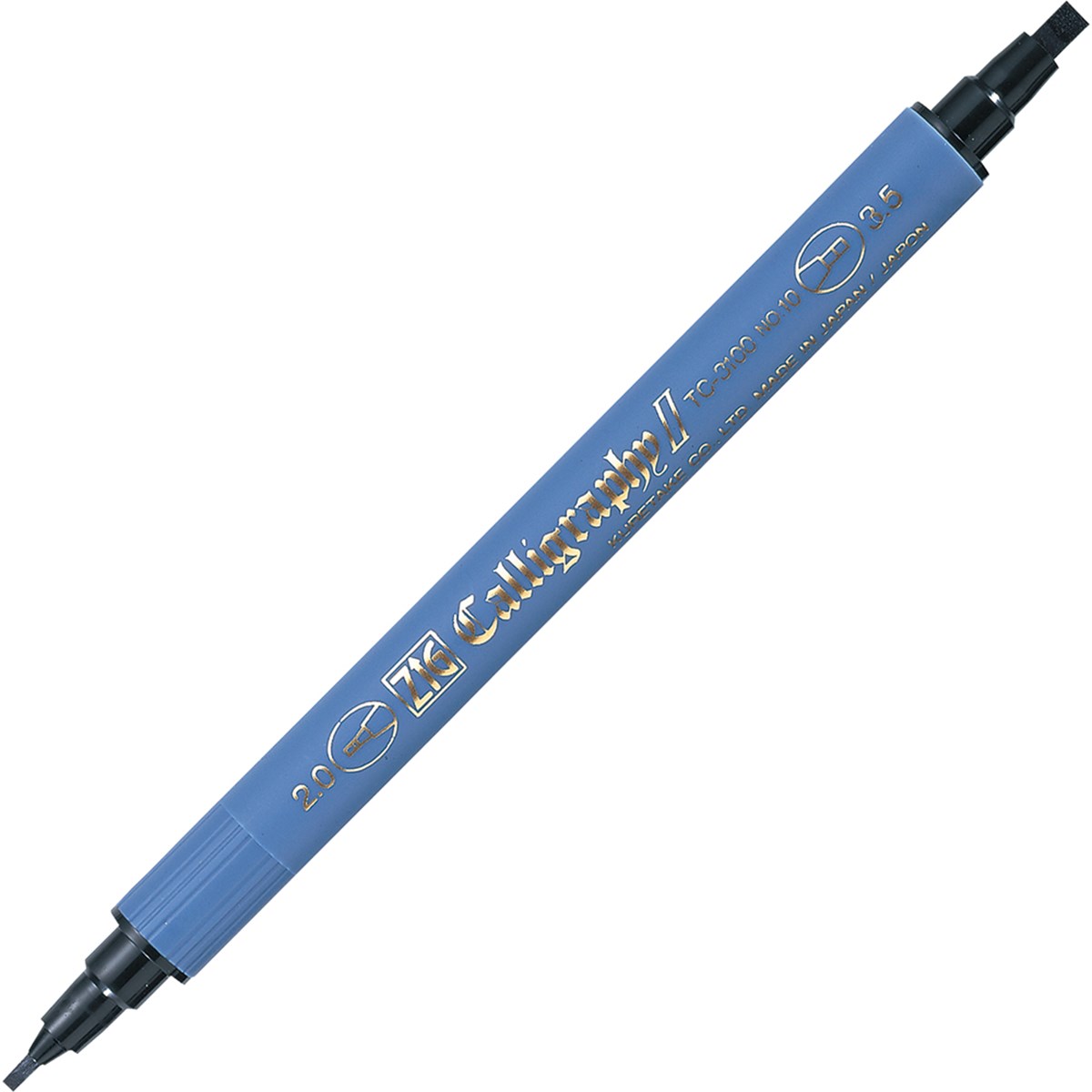 Kalligrafipenna från Zig med dubbla spetsar 2 och 3,5 mm. Luktfritt, vattenbaserat tusch utan xylen.