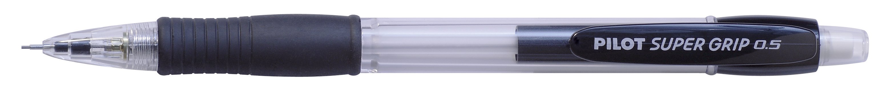 Transparent stiftpenna med räfflat gummigrepp. Radertopp. 12 st/förp.