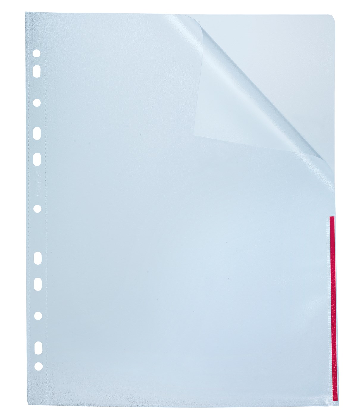 Av 0,12 mm polypropylenplast. Färgmarkerad långsida. Öppen i överkant och halva höger långsida. Universalhålning. Kopiesäker.