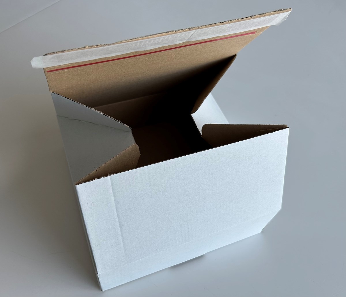 Förtejpad e-handelslåda med snabbotten vilket innebär att kartongen kan resas och förslutas mycket snabbt utan behov av ytterligare tejp. Anpassade efter Postnords storlekskrav för varor på max 2 kilo som skickas till kundens brevlåda, postbox eller fastighetsbox. Fefco 703.