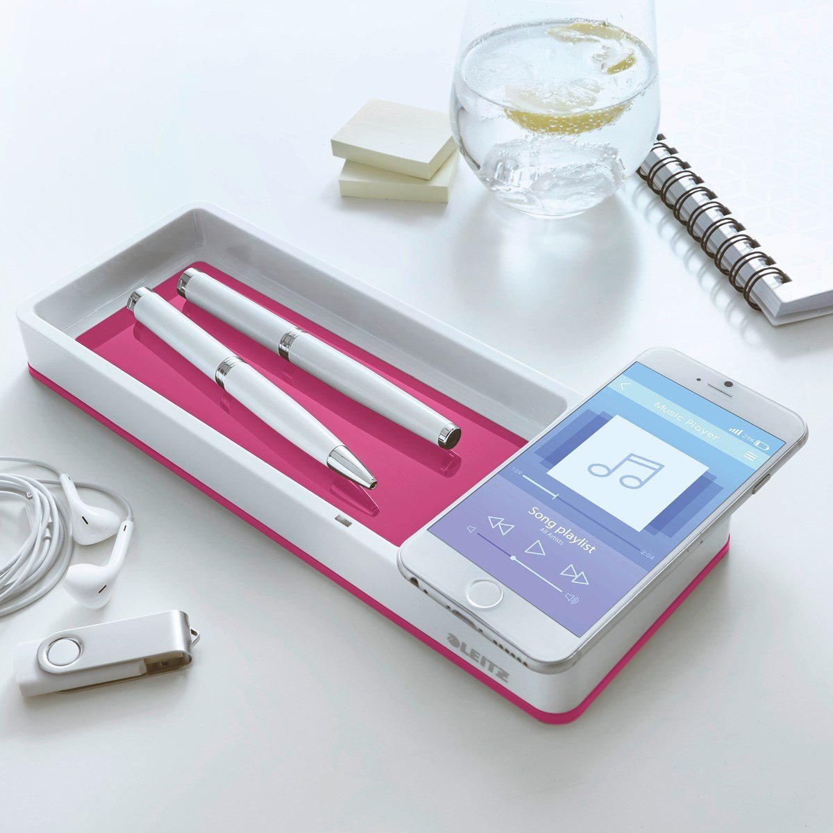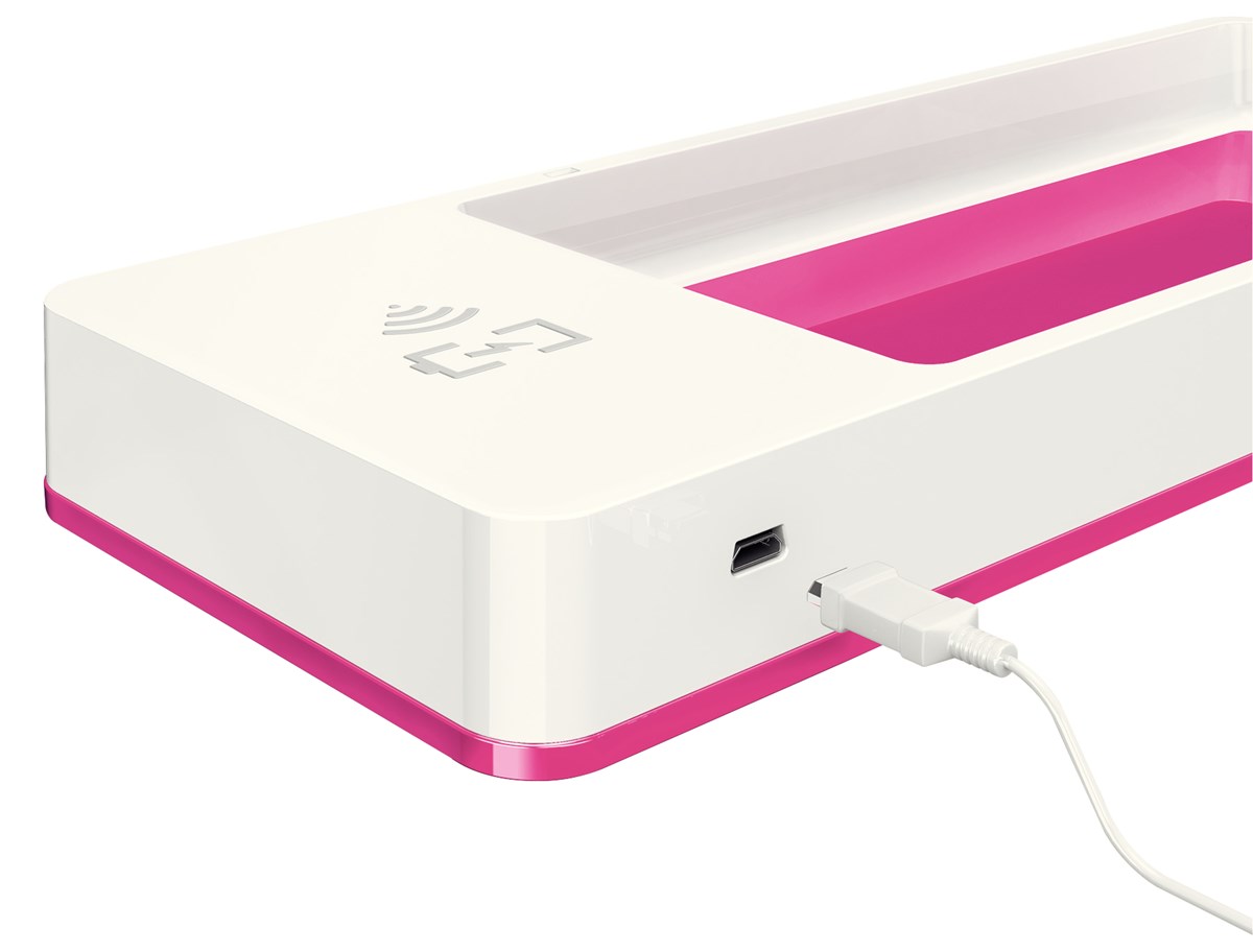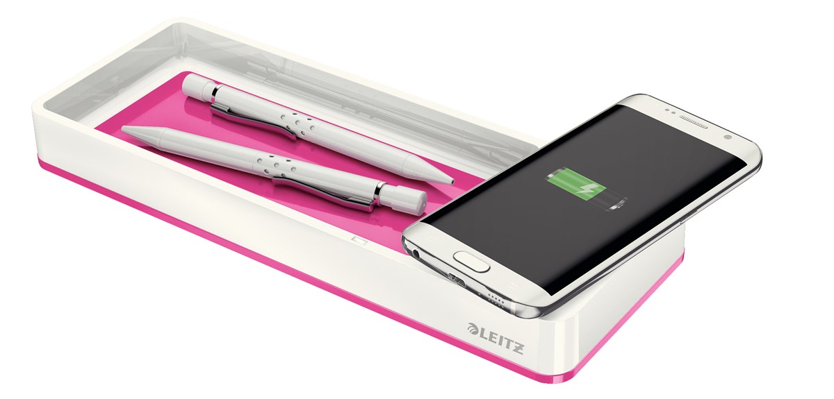 Pennfack med praktisk induktionsladdare. Med den trådlösa Qi-laddaren kan du ladda din mobiltelefon utan kabel (kräver att telefonen stödjer detta). När telefonen är fulladdad slutar enheten att ladda. USB-kabel för strömtillförsel medföljer. Mått: 266x28x101 mm.