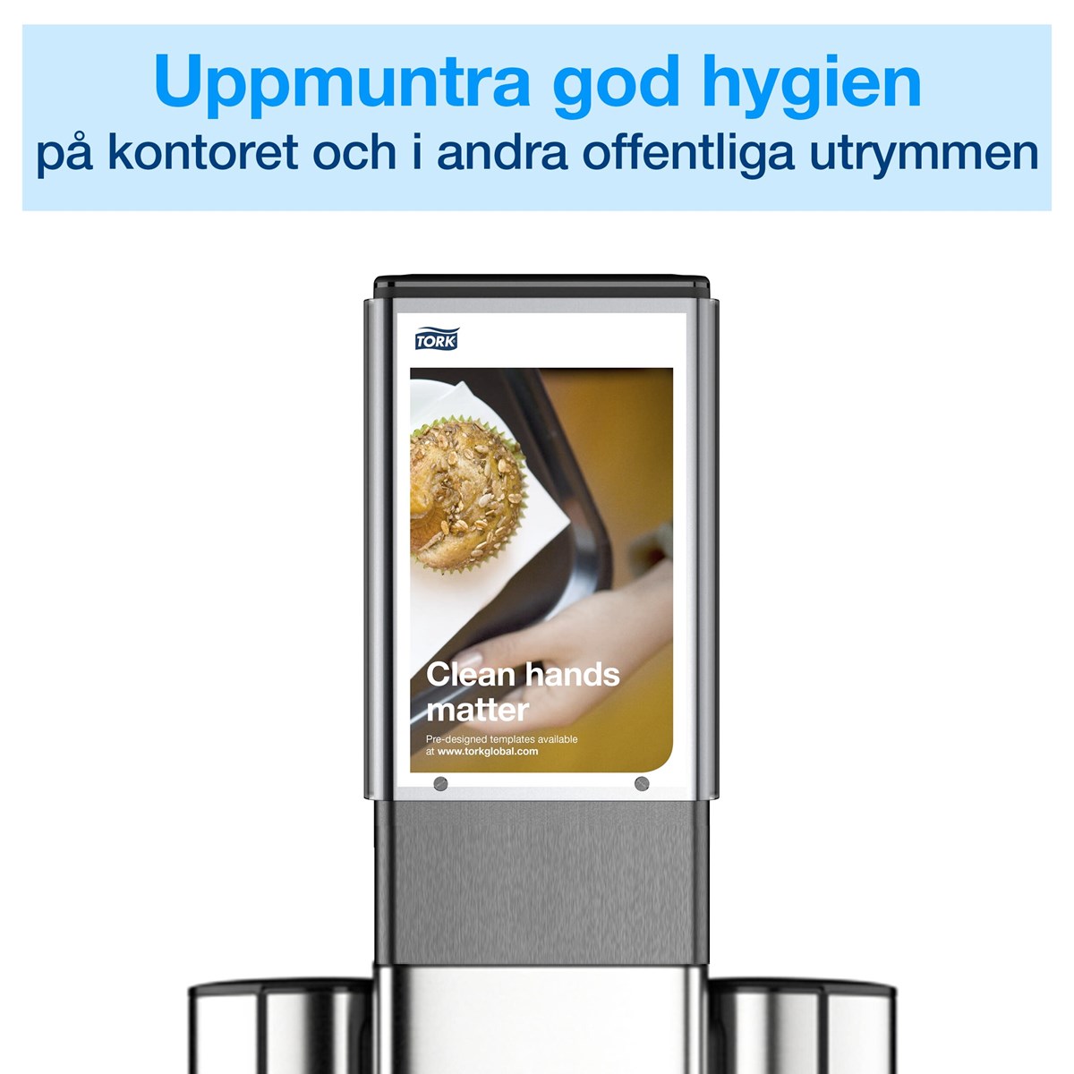 Informationsfönstret för Tork Hygienställ är ett kommunikationsverktyg som uppmuntrar till att förbättra hygienen på kontor och andra publika platser. Ett perfekt sätt att påminna om vikten av god handhygien och annan viktig information.